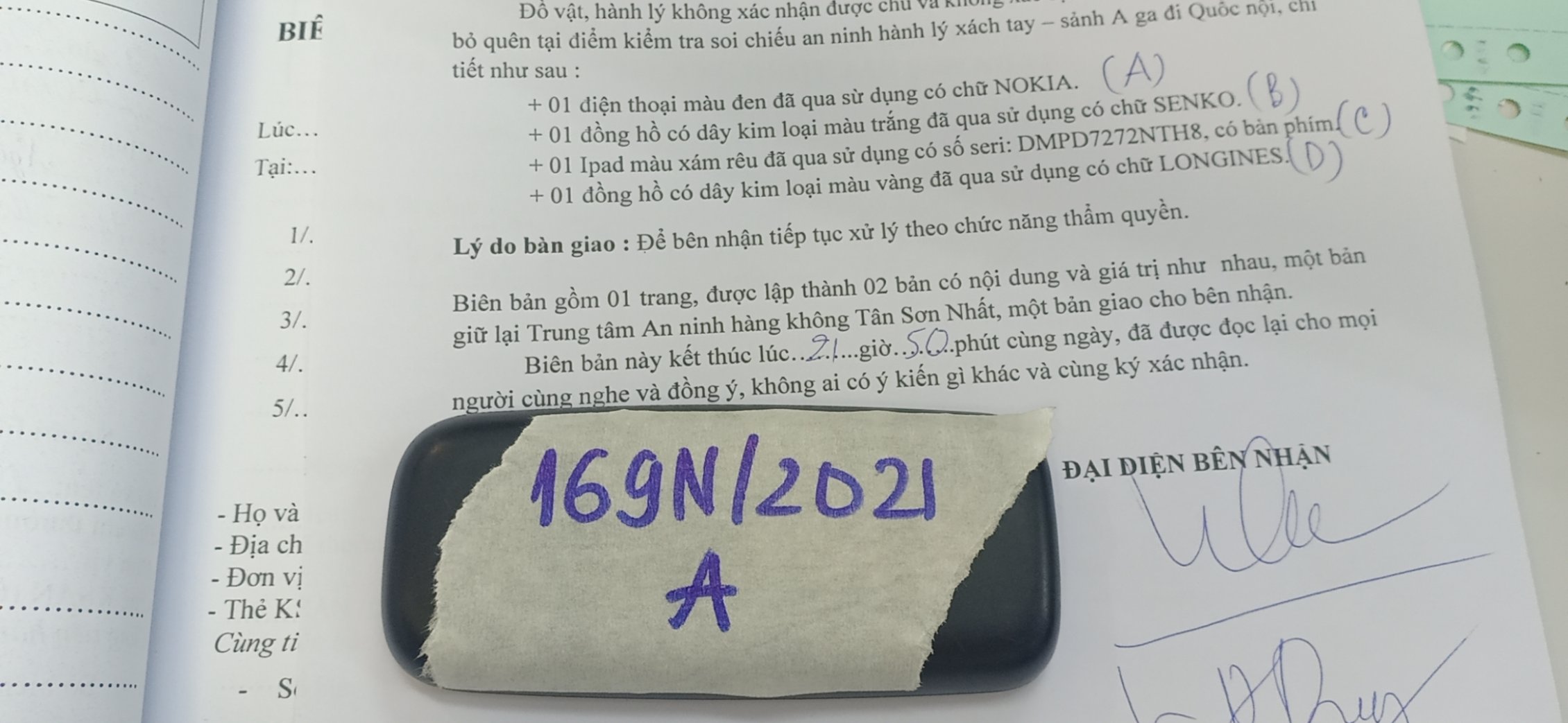 Cảng HKQT Tân Sơn Nhất thông tin về tài sản, hành lý của khách đánh rơi, bỏ quên tại Cảng hàng không tuần từ 19/04 – 25/04/2021 như sau: