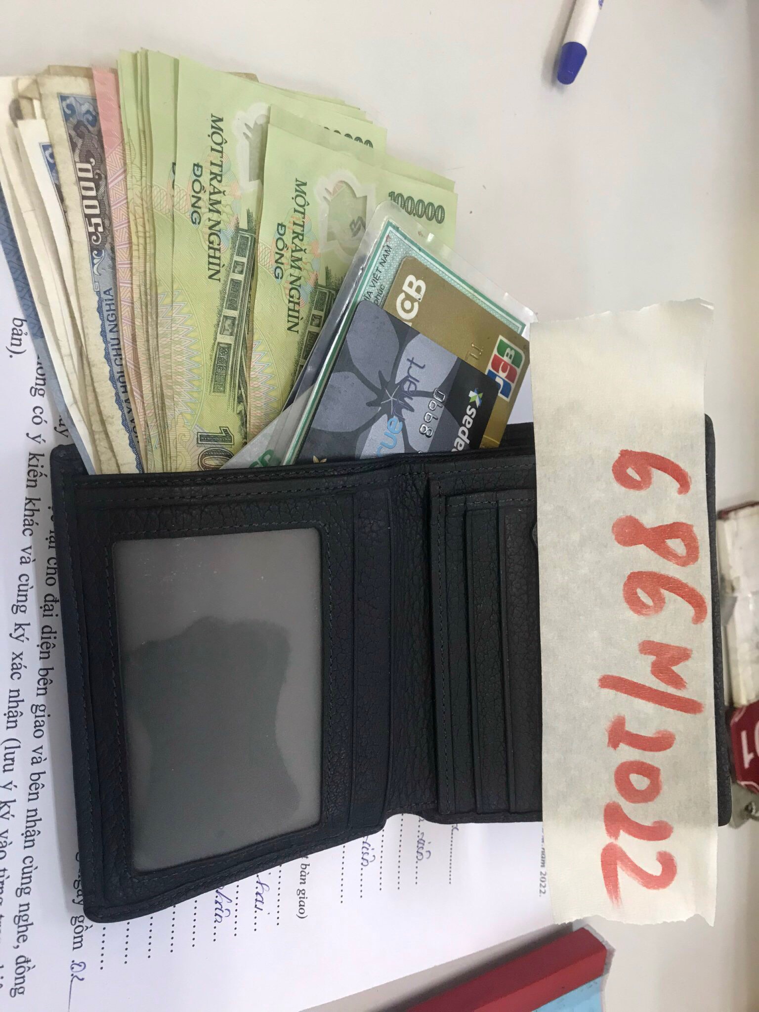 Ngày tiếp nhận: 28/8/2022 Mô tả: 01 balo màu hồng: 01 ví đen có 242.000vnd, 01 ví hồng có 566.000vnd, 05 mắt kính, 01 đồng hồ dây da AOLIX. Vị trí: An ninh soi chiếu quốc nội |