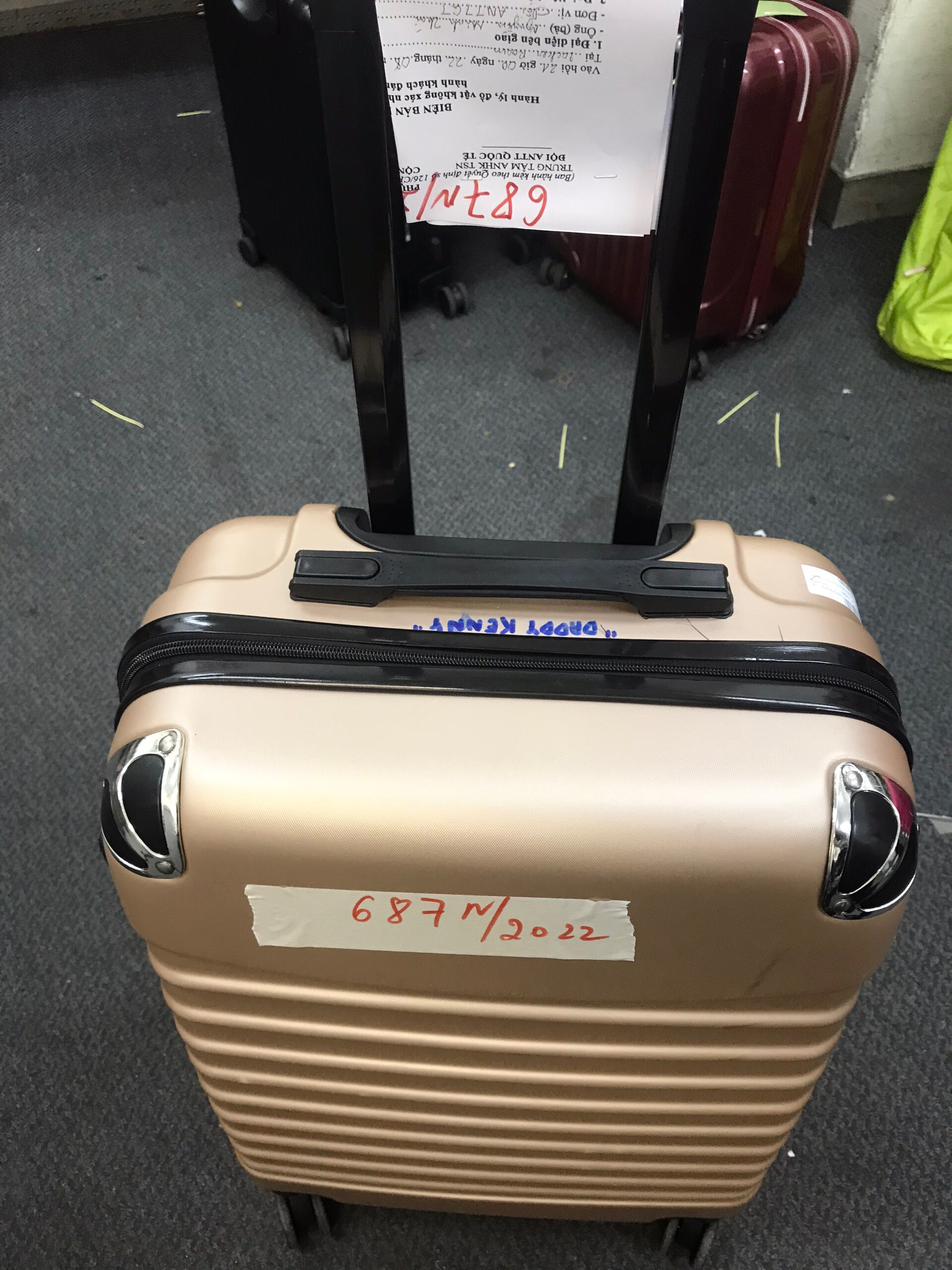Ngày tiếp nhận: 22/8/2022 Mô tả: 01 vali nhựa màu vàng đã khóa. Vị trí: An ninh trật tự quốc tế |