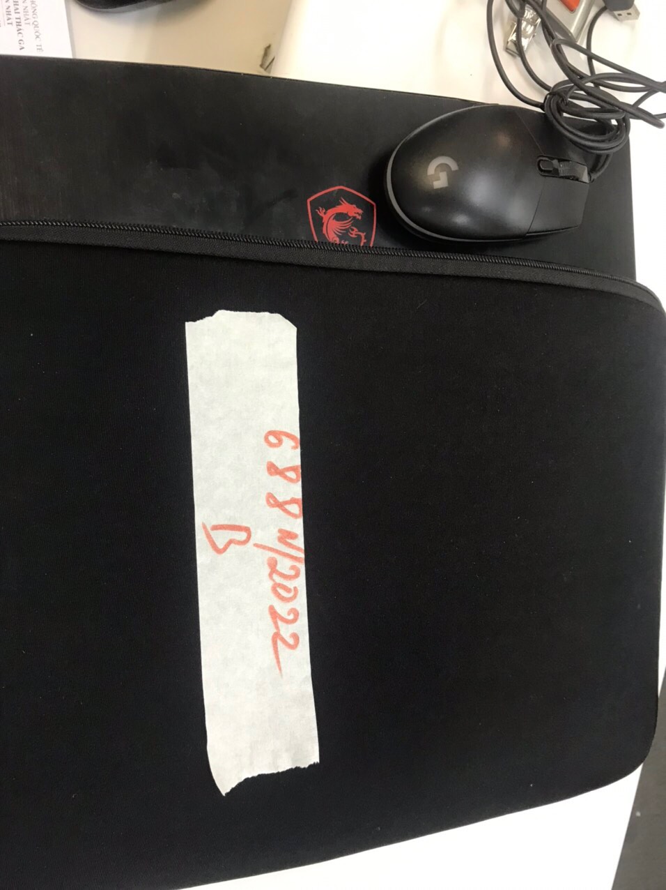 Ngày tiếp nhận: 22/8/2022 Mô tả: 01 túi đựng màu đen có 01 laptop đen MSI và 01 chuột Logitech. Vị trí: An ninh soi chiếu quốc nội |