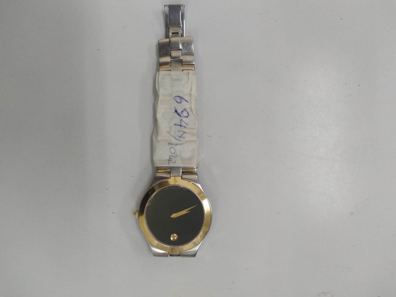Ngày tiếp nhận: 24/8/2022 Mô tả: 01 đồng hồ màu vàng trắng chữ MOVADO. Vị trí: An ninh soi chiếu quốc tế |