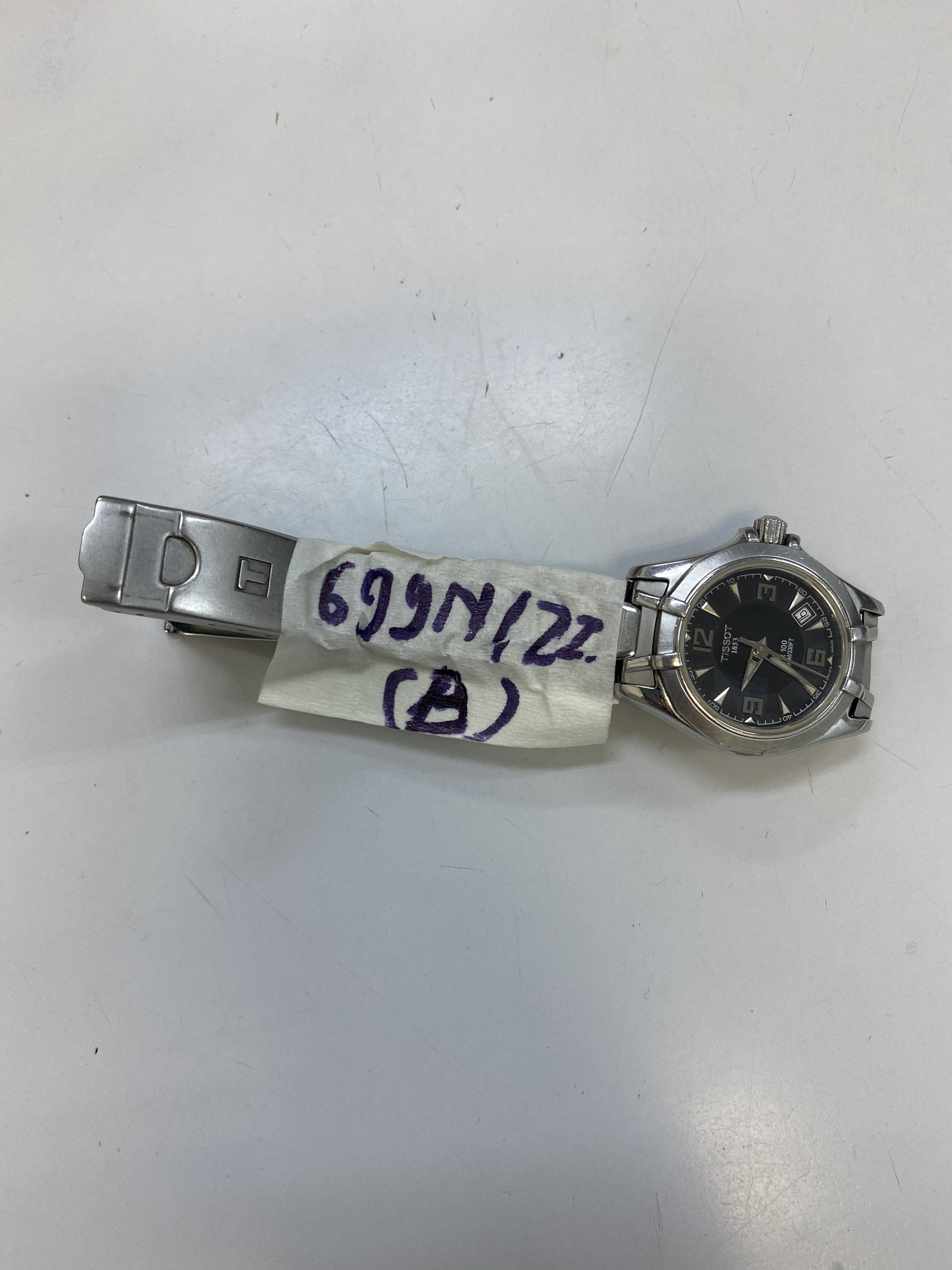 Ngày tiếp nhận: 24/8/2022 Mô tả: 01 đồng hồ kim loại, dây kim loại chữ TISSOT. Vị trí: An ninh soi chiếu quốc nội |
