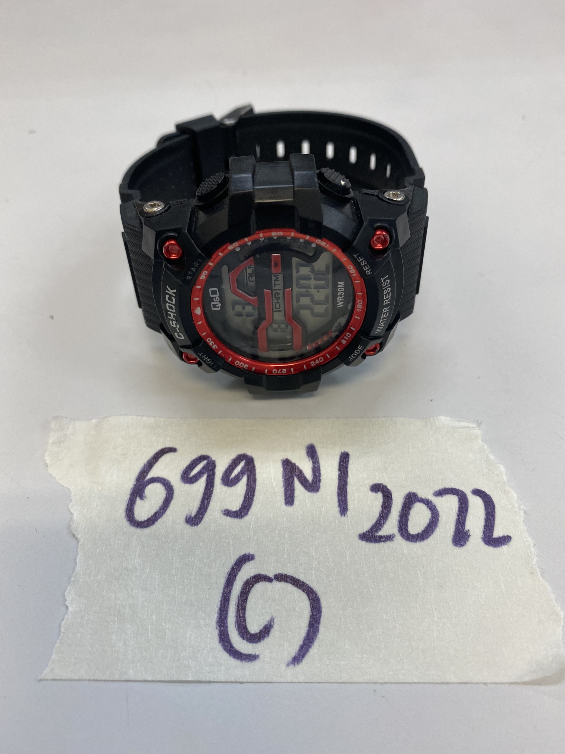 Ngày tiếp nhận: 24/8/2022 Mô tả: 01 đồng hồ màu đen, dây đen chữ G-SHOCK. Vị trí: An ninh soi chiếu quốc nội |