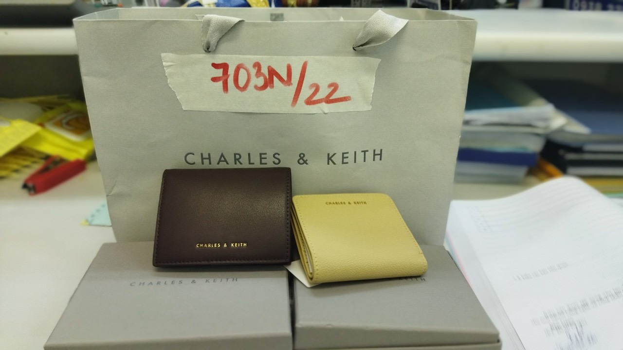Ngày tiếp nhận: 25/8/2022 Mô tả: 01 túi giấy màu xám bên trong có 02 ví nữ hiệu Charles&Keith. Vị trí: An ninh trật tự bến xe |