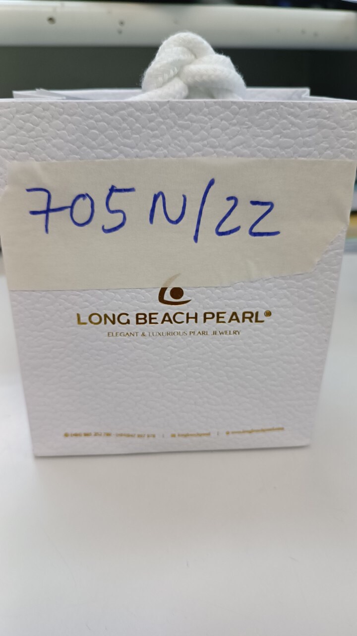 Ngày tiếp nhận: 26/8/2022 Mô tả: 01 túi giấy màu trắng LongBeachPearl có 01 đôi bông tai kim loại trắng vàng đính đá. Vị trí: An ninh soi chiếu quốc tế |