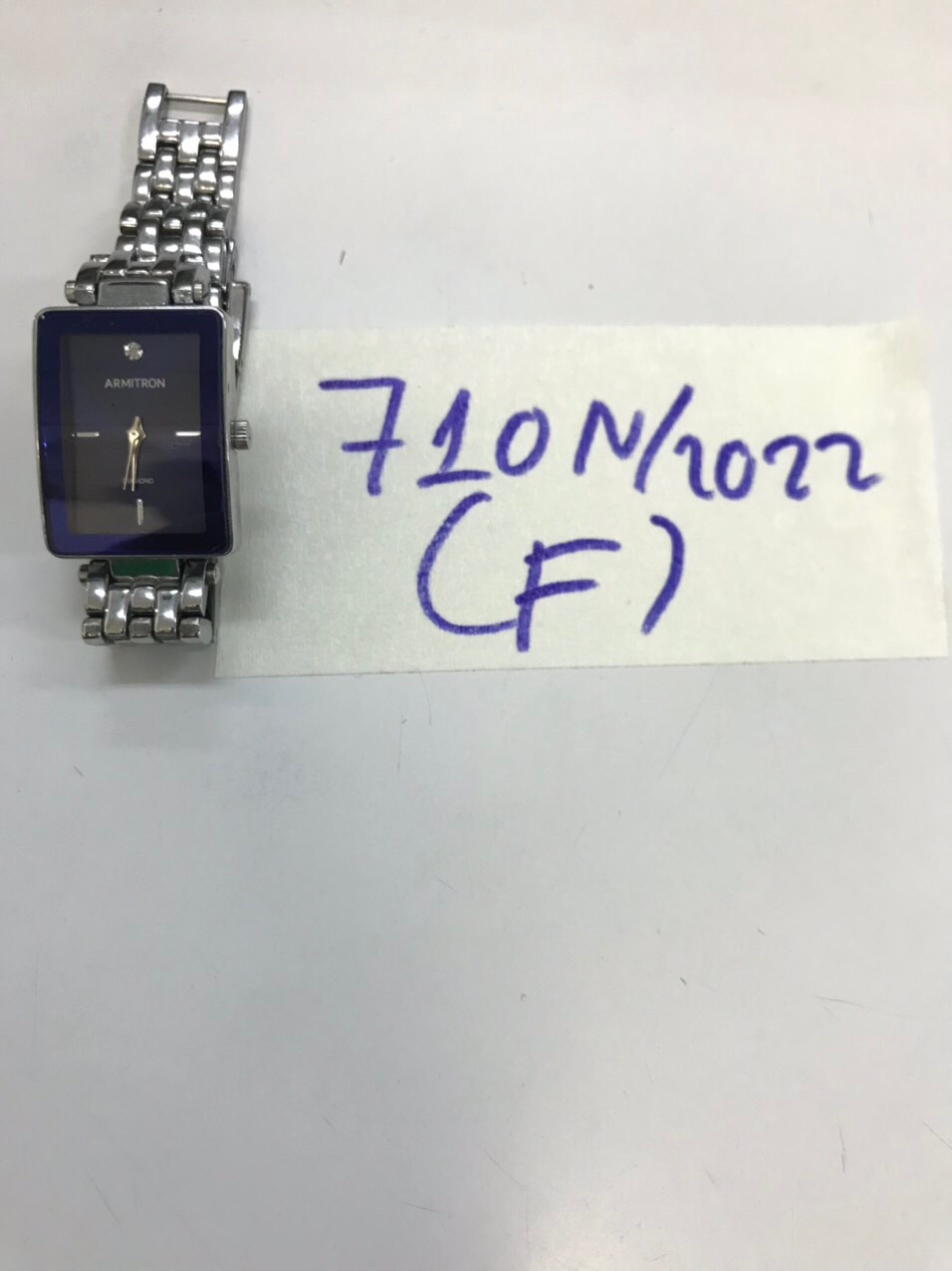 Ngày tiếp nhận: 26/8/2022 Mô tả: 01 đồng hồ kim loại trắng Armitron. Vị trí: An ninh soi chiếu quốc nội |
