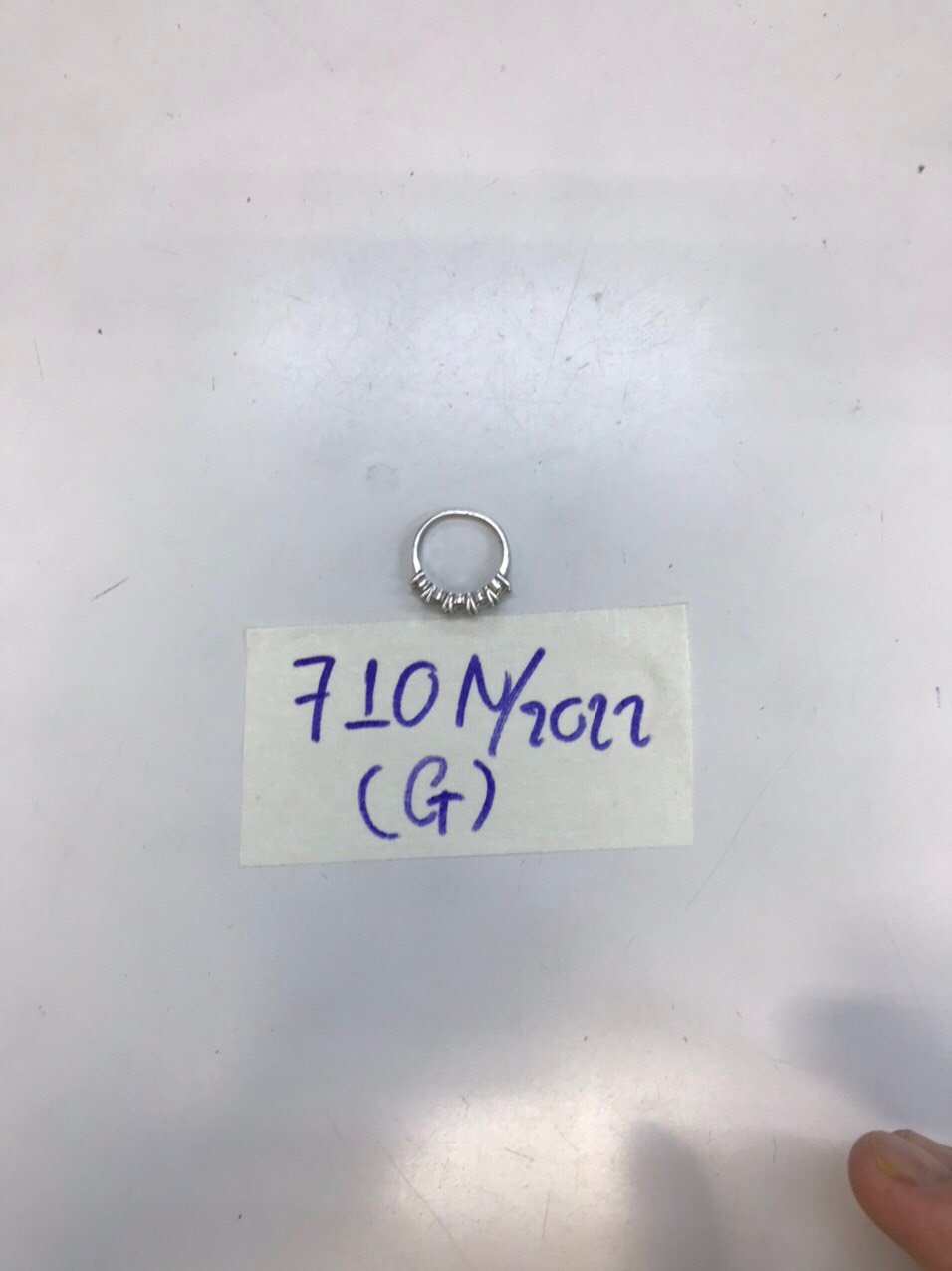 Ngày tiếp nhận: 22/8/2022 Mô tả: 01 nhẫn màu trắng đính đá. Vị trí: An ninh soi chiếu quốc nội |