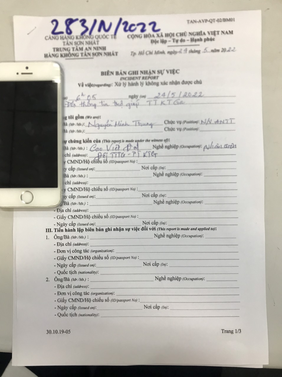 Ngày tiếp nhận: 29/05/2022 Mã hồ sơ: 305N2022E Vị trí: An ninh soi chiếu quốc nội |