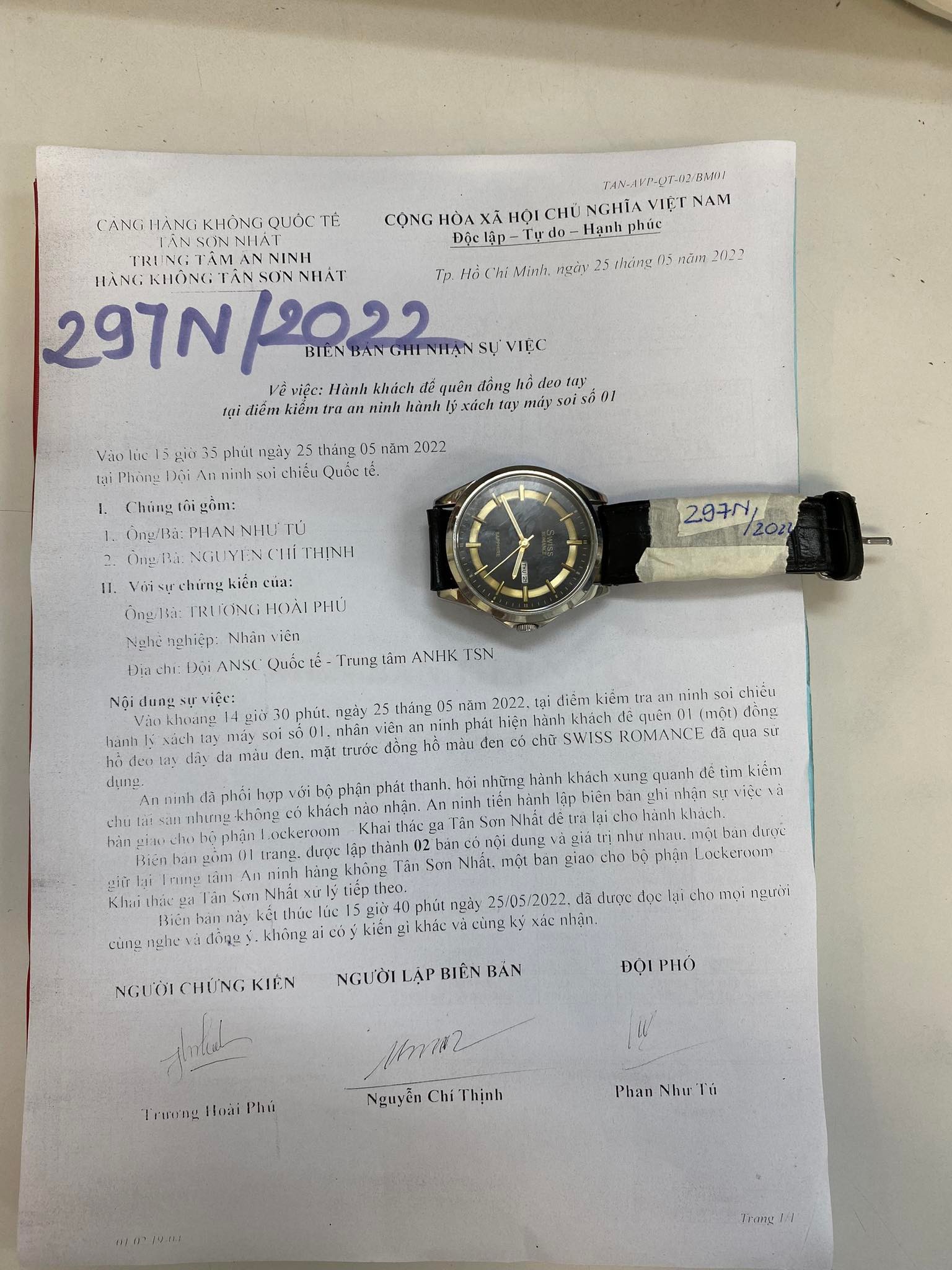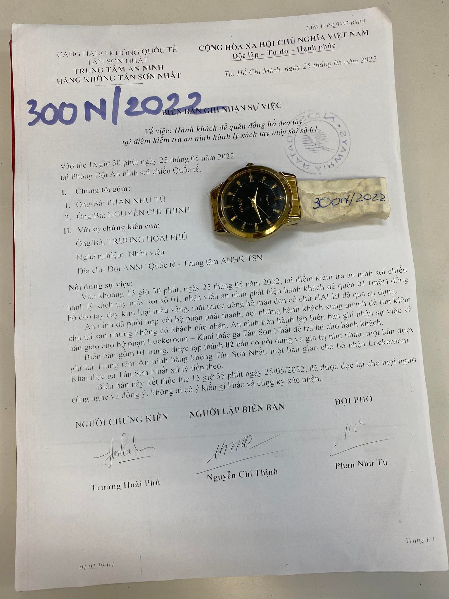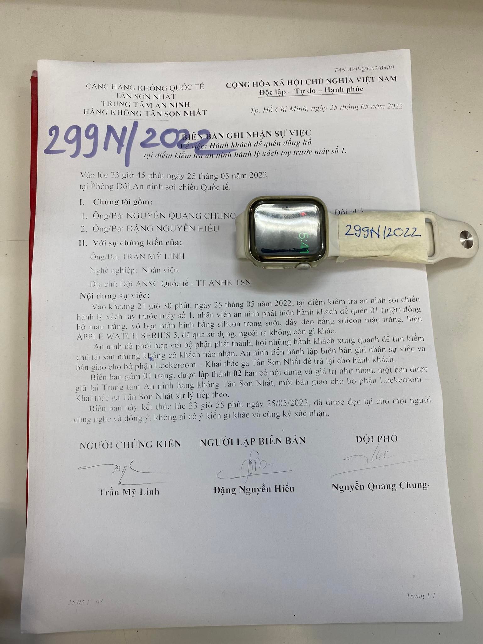 Ngày tiếp nhận: 29/05/2022 Mô tả: đồng hồ có chữ APPLE WATCH. Vị trí: An ninh soi chiếu quốc nội |