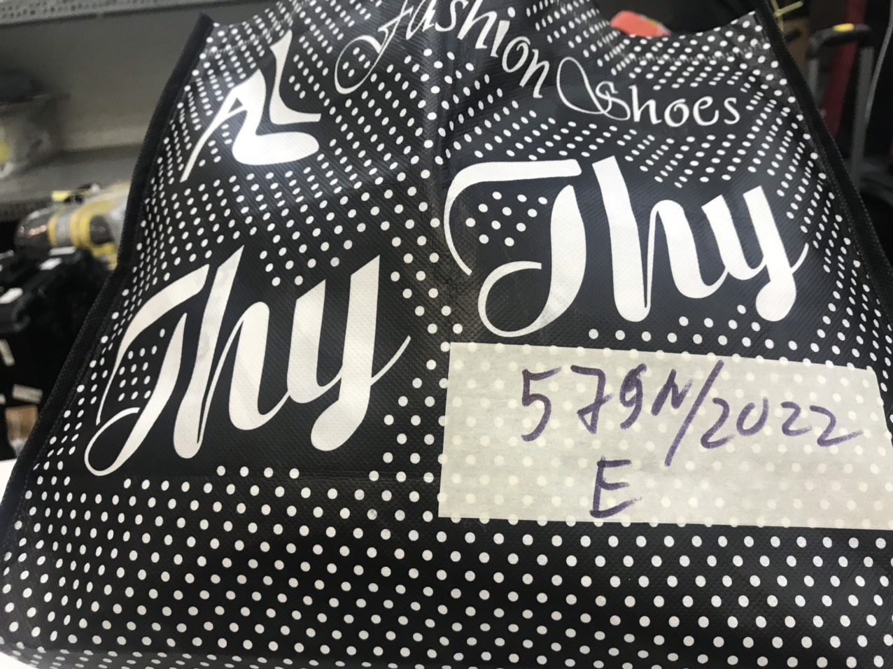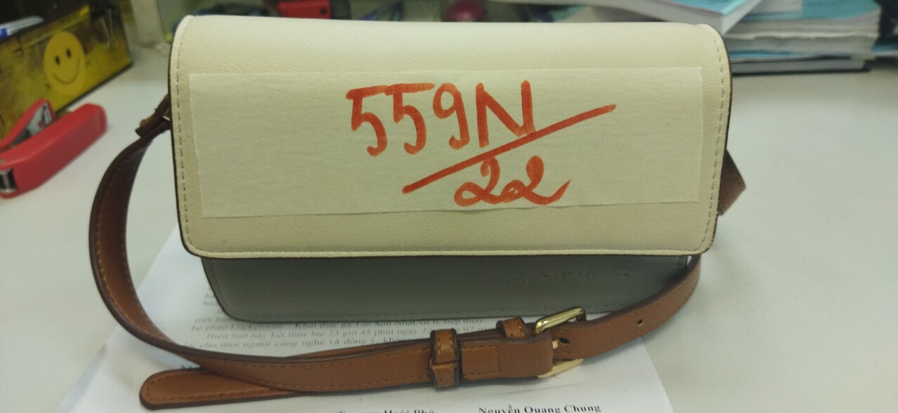 Ngày tiếp nhận: 27/07/2022 Mã hồ sơ: 579N2022E Mô tả: 01 túi xách"THY THY" bên trong có quần áo cũ và đồ dùng cá nhân đã qua sd và 01 đôi giầy. Vị trí: An ninh soi chiếu quốc nội |