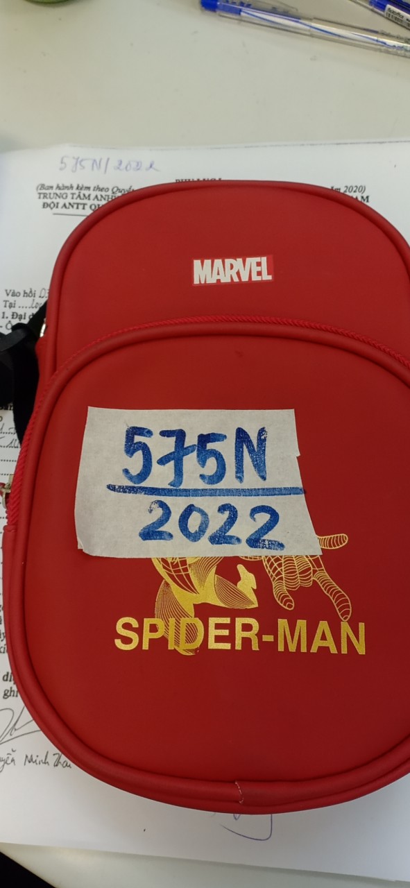 Ngày tiếp nhận: 27/07/2022 Mã hồ sơ: 575N2022 Mô tả: 01 túi SPIDER MAN có tai nghe màu đỏ có 02 tớ 10.000 và 5 tờ 5000. Vị trí: An ninh trật tự quốc tế |