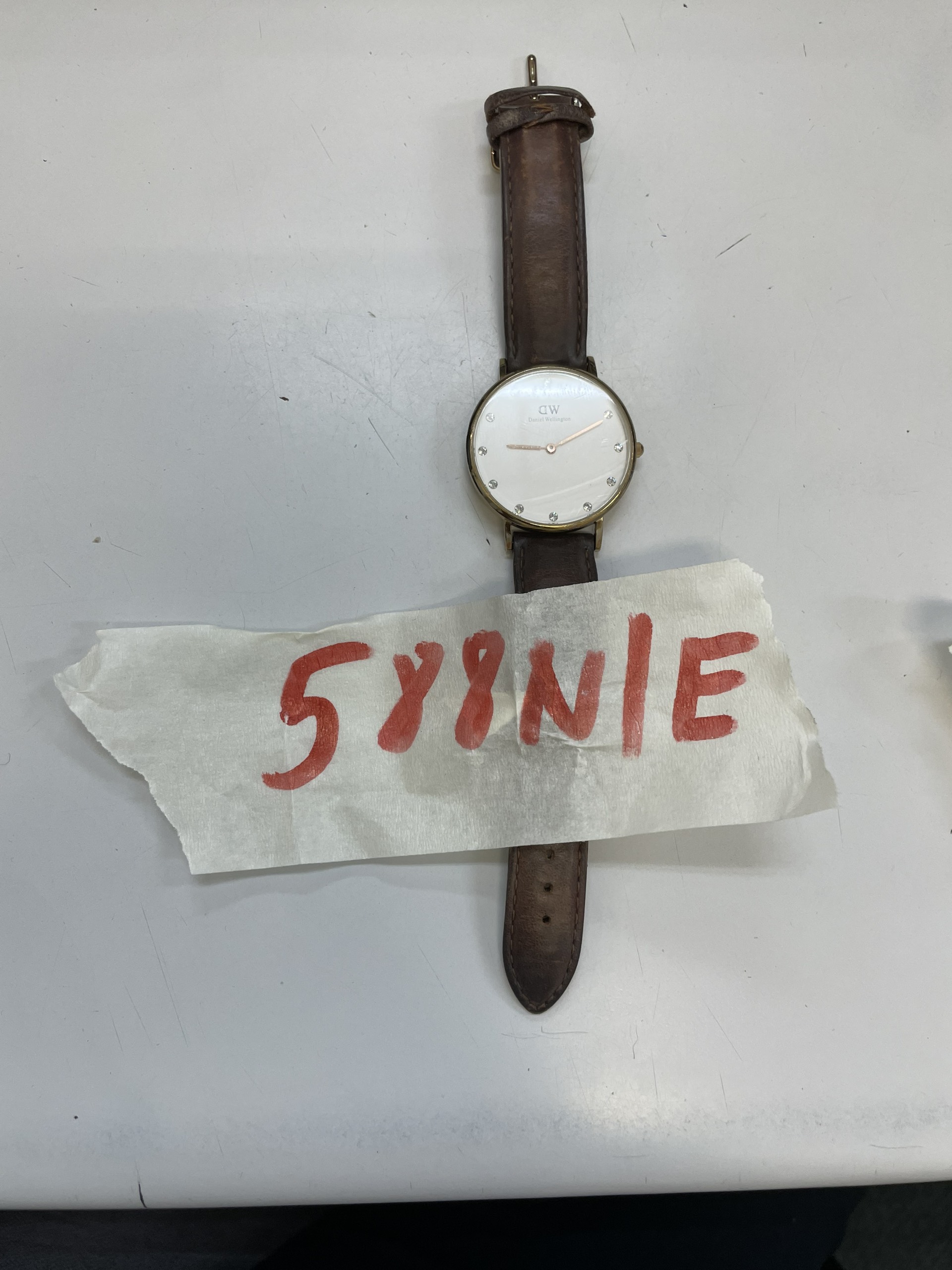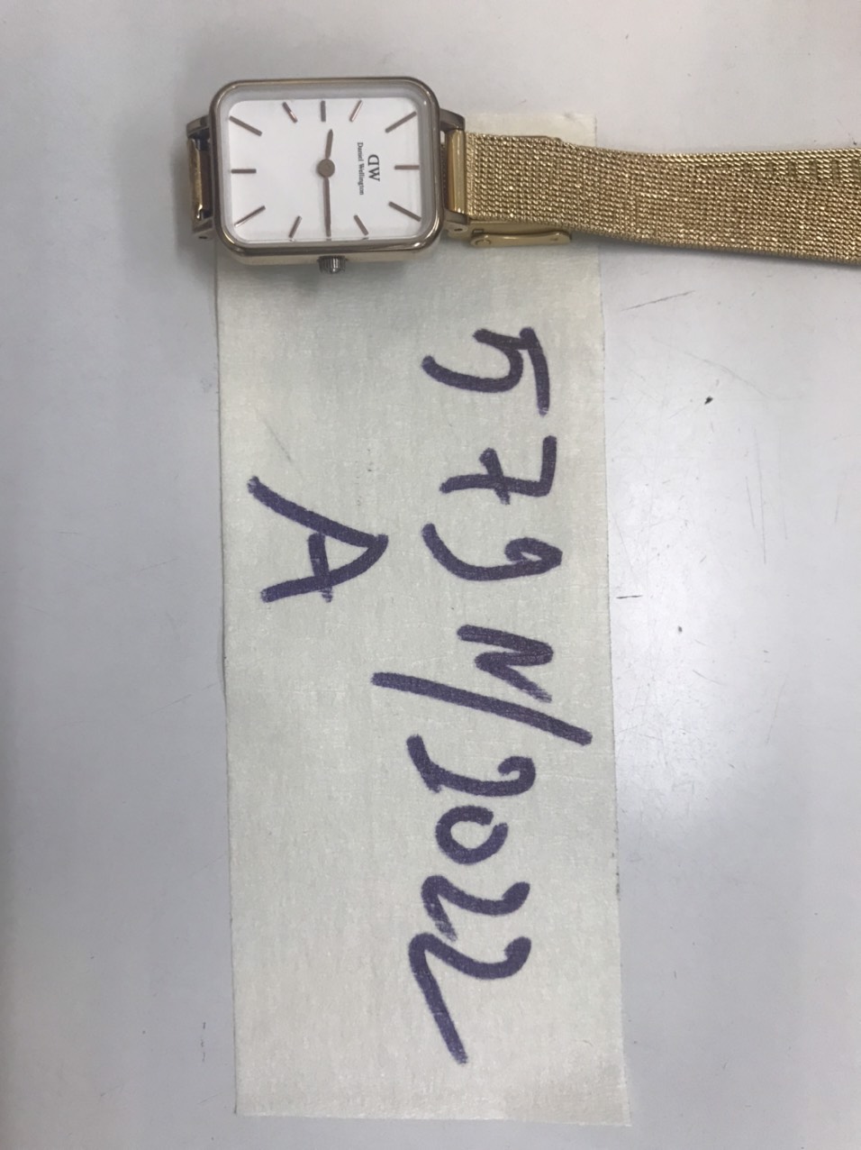 Ngày tiếp nhận: 27/07/2022 Mã hồ sơ: 579N2022A Mô tả: 01 đồng hồ kim loại màu vàng DW. Vị trí: An ninh soi chiếu quốc nội |