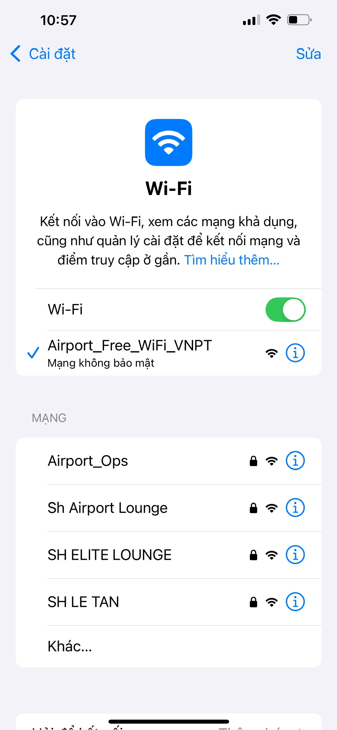 3. Tại nhà ga quốc nội T3: Vui lòng lựa chọn mạng "Airport_Free_Wifi_VNPT"