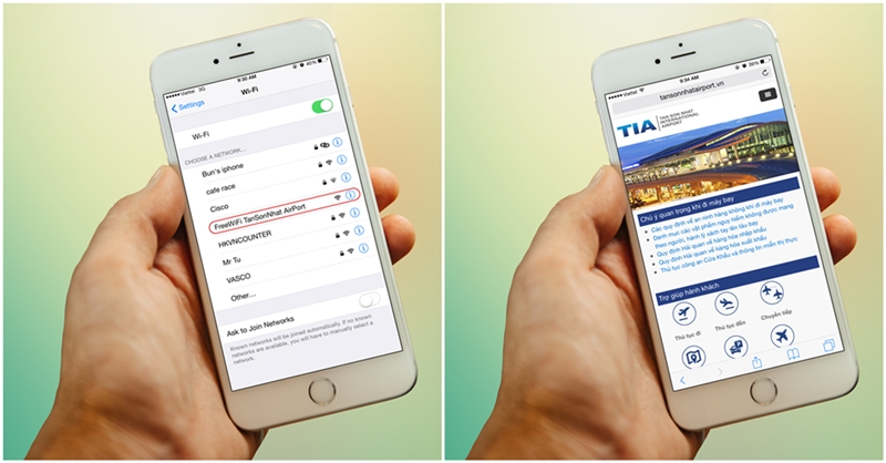 2. Tại nhà ga quốc tế T2: Vui lòng lựa chọn mạng ".TIA-WiFi Mien Phi-QT".
