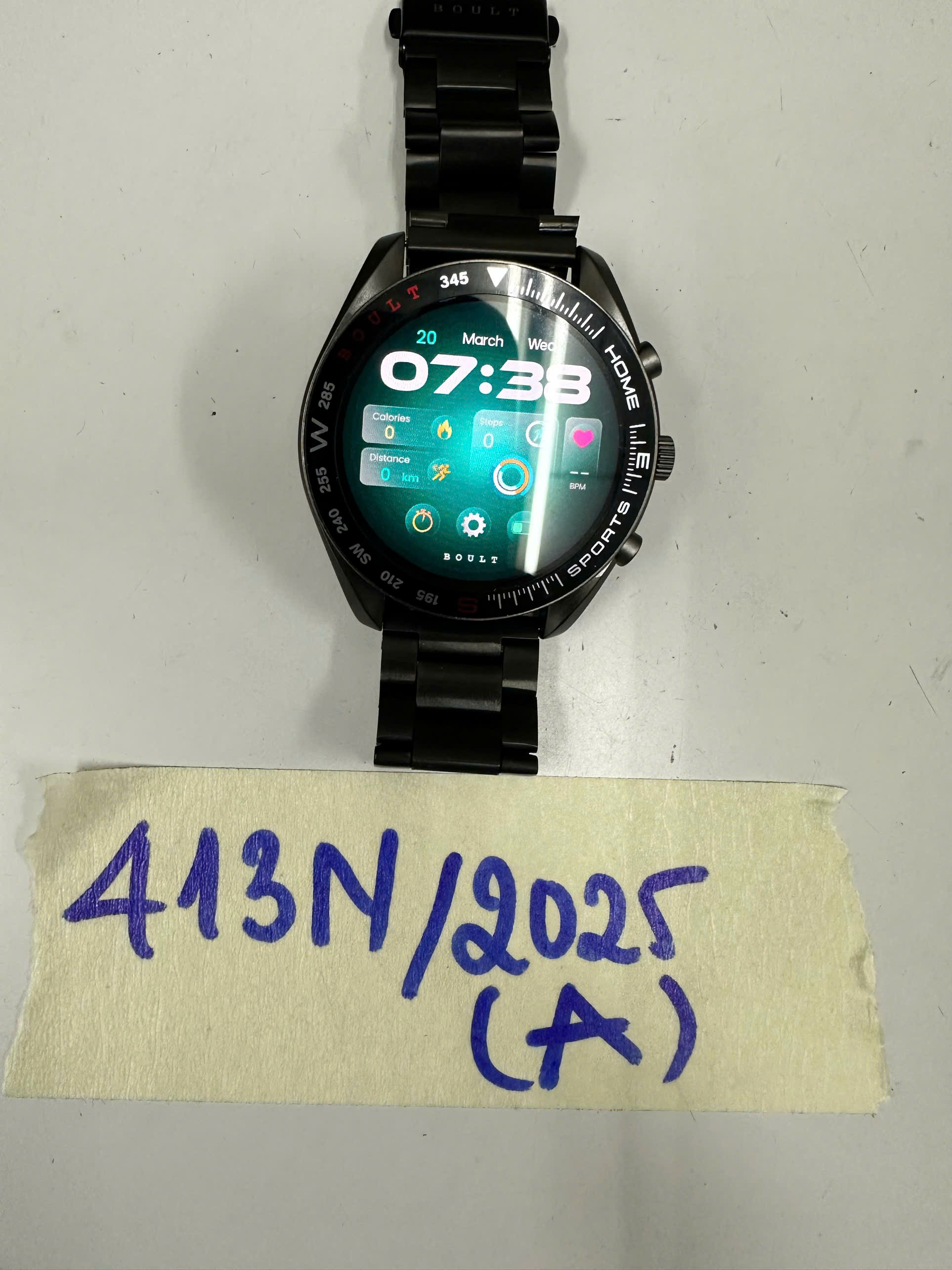 Ngày tiếp nhận: 02/03/2025 Mã hồ sơ: 413N2025A Mô tả: 01 đồng hồ mặt hình tròn bằng kim loại màu đen dây bằng kim loại màu đen có chữ BOULT OPTICAL PPG TECH. |