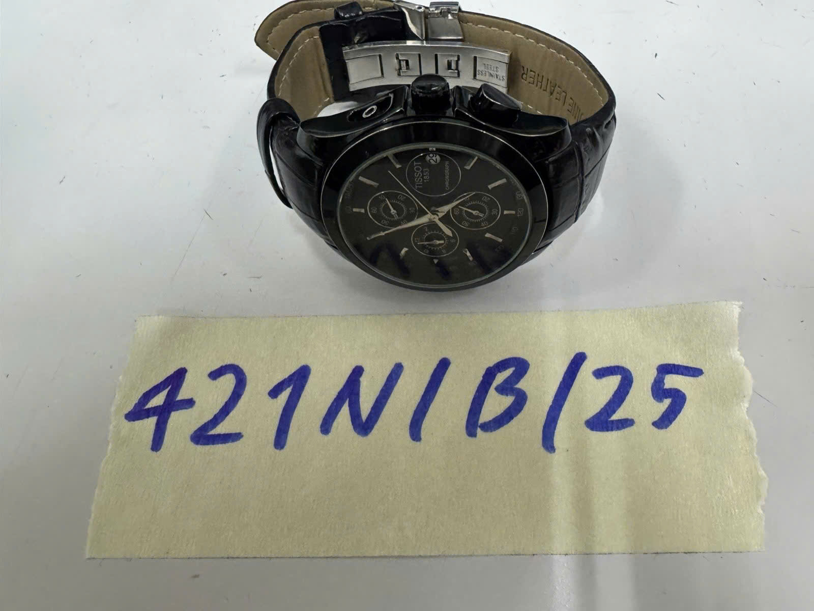 Ngày tiếp nhận: 02/03/2025 Mã hồ sơ: 421N2025B Mô tả: 01 đồng hồ mặt hình tròn màu đen có chữ TISSOT, dây đeo bằng da màu đen. |