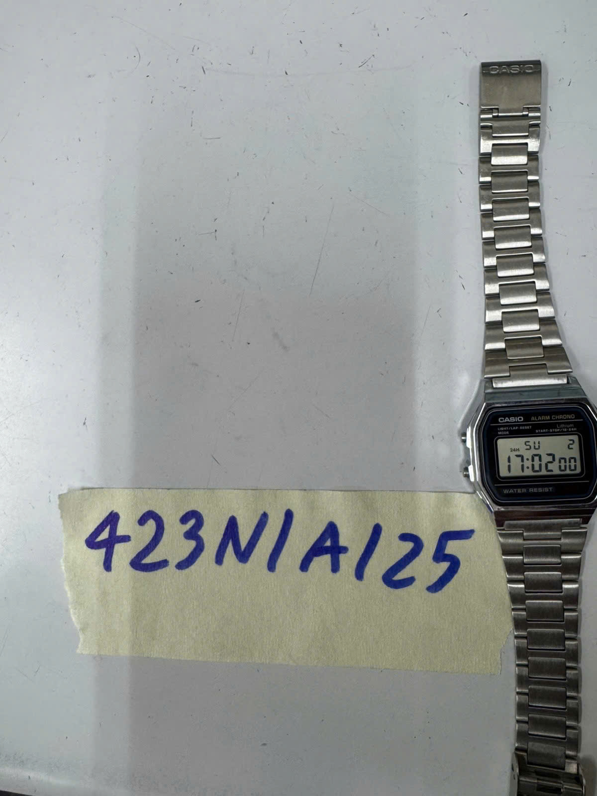 Ngày tiếp nhận: 02/03/2025 Mã hồ sơ: 423N2025A Mô tả: 01 đồng hồ màu trắng có chữ "CASIO", dây kim loại màu trắng. |