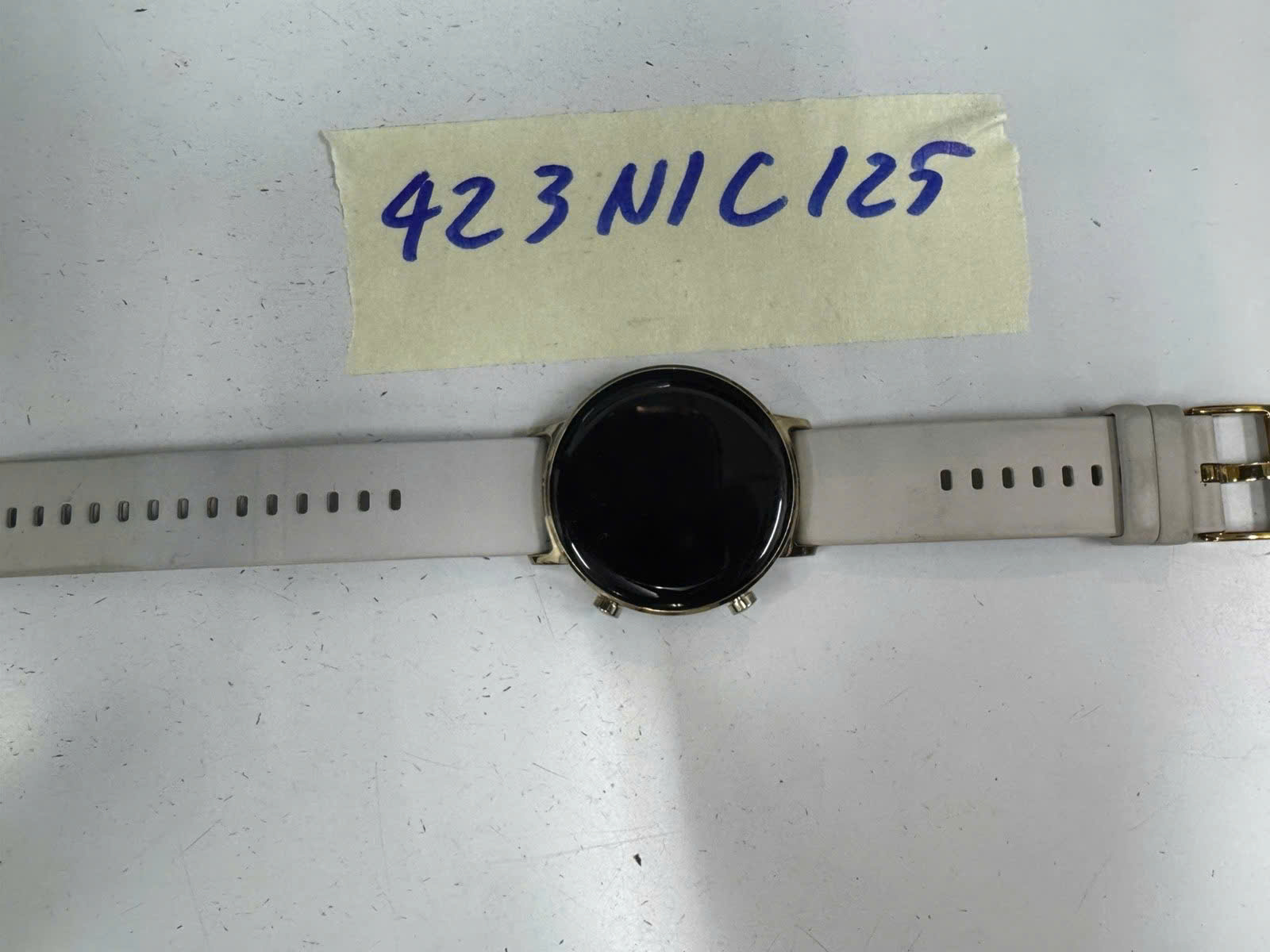 Ngày tiếp nhận: 02/03/2025 Mã hồ sơ: 423N2025C Mô tả: 01 đồng hồ thông minh màu vàng có chữ "Huawei", dây cao su màu trắng. |