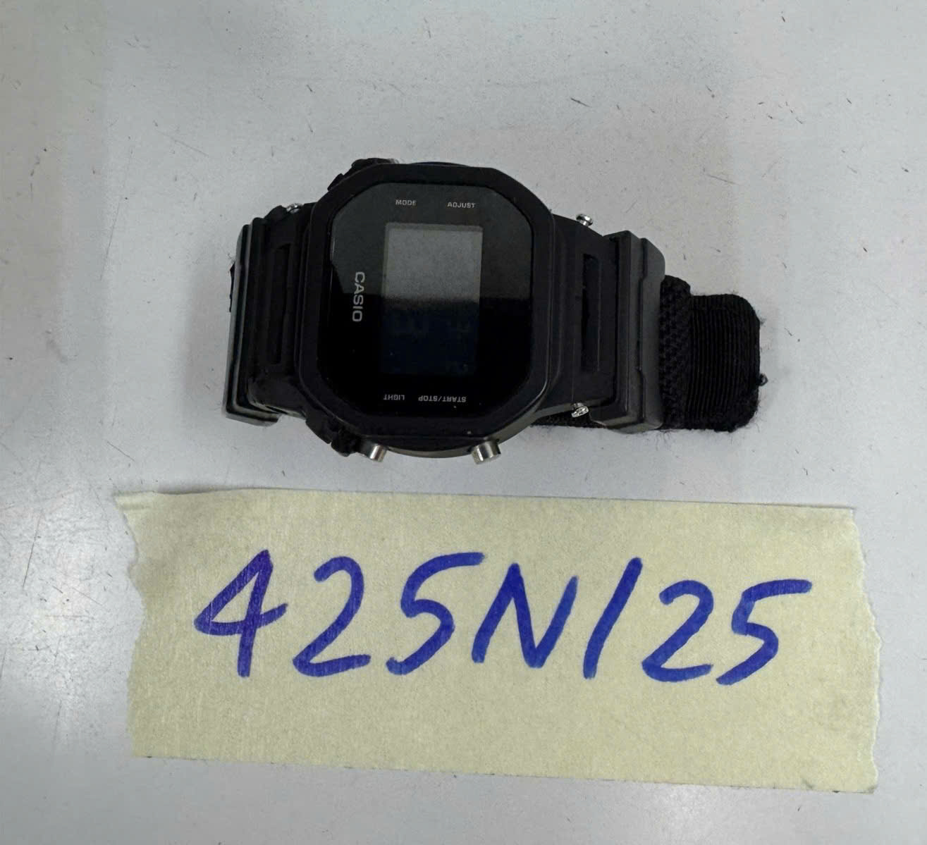 Ngày tiếp nhận: 02/03/2025 Mã hồ sơ: 425N2025 Mô tả: 01 đồng hồ điện tử màu đen, dây vải màu đen, trên mặt đồng hồ chữ "CASIO". |