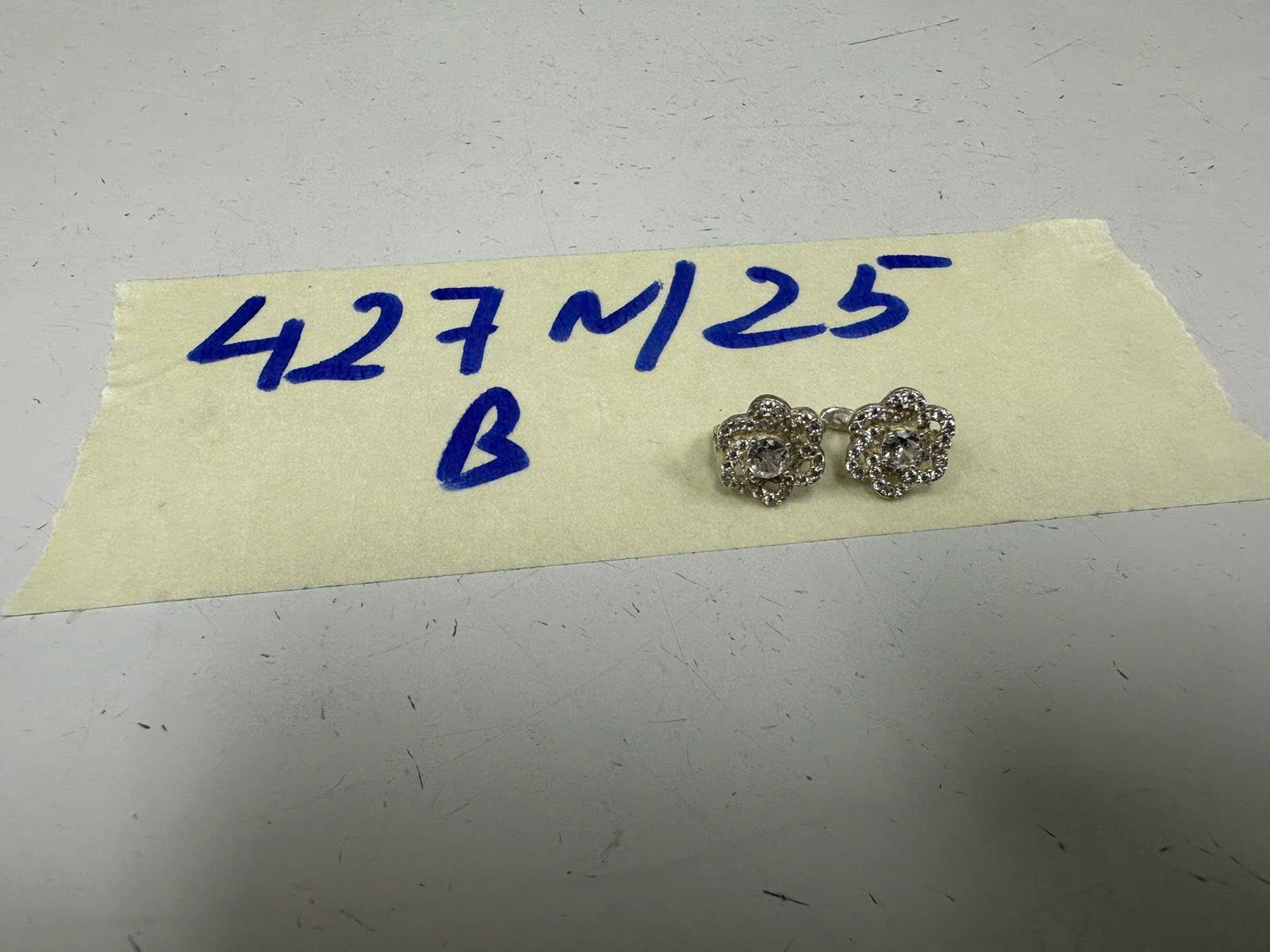 Ngày tiếp nhận: 02/03/2025 Mã hồ sơ: 427N2025B Mô tả: 01 đôi bông tai màu bạc có đính đá màu trắng. |