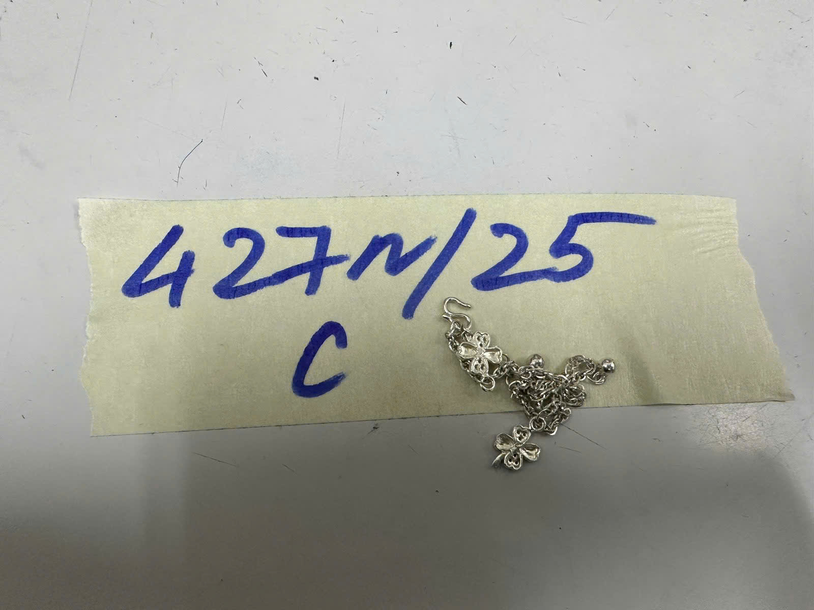 Ngày tiếp nhận: 02/03/2025 Mã hồ sơ: 427N2025C Mô tả: 01 dây kim loại màu bạc có 02 hình bốn lá. |