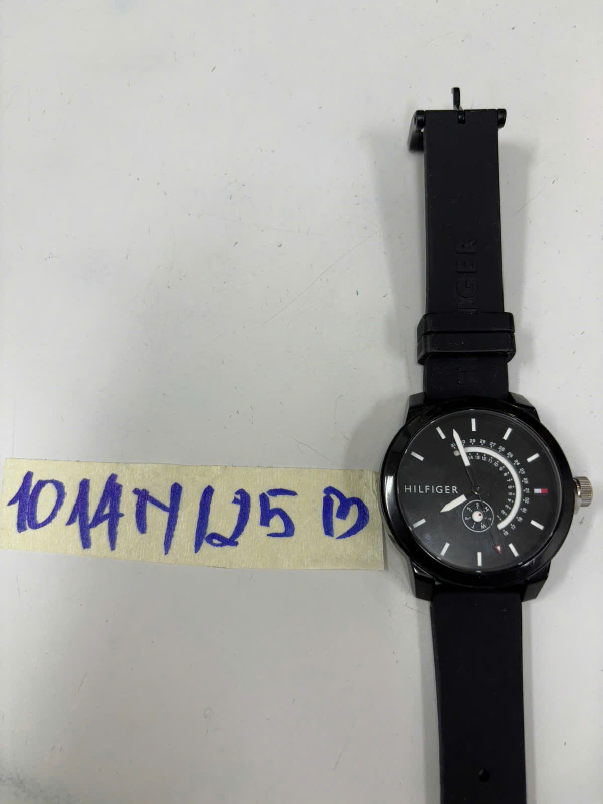 Ngày tiếp nhận: 03/6/2025 Mã hồ sơ: 1014N2025B Mô tả: 01 đồng hồ màu đen, mặt đồng hồ kim loại hình tròn có logo chữ HILFIGER dây đeo bằng cao su. |