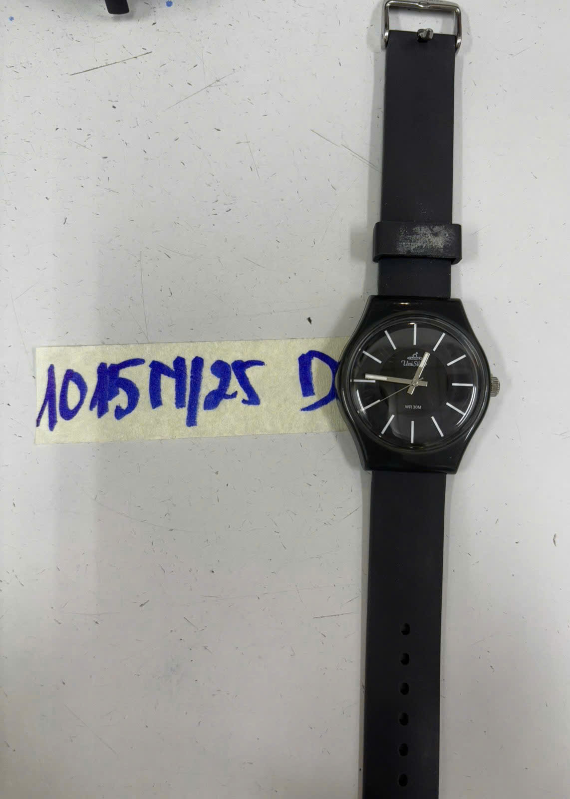 Ngày tiếp nhận: 03/6/2025 Mã hồ sơ: 1015N2025D Mô tả: 01 đồng hồ đeo tay màu đen, mặt đồng hồ hình tròn chữ UNISILER, dây cao su màu đen. |
