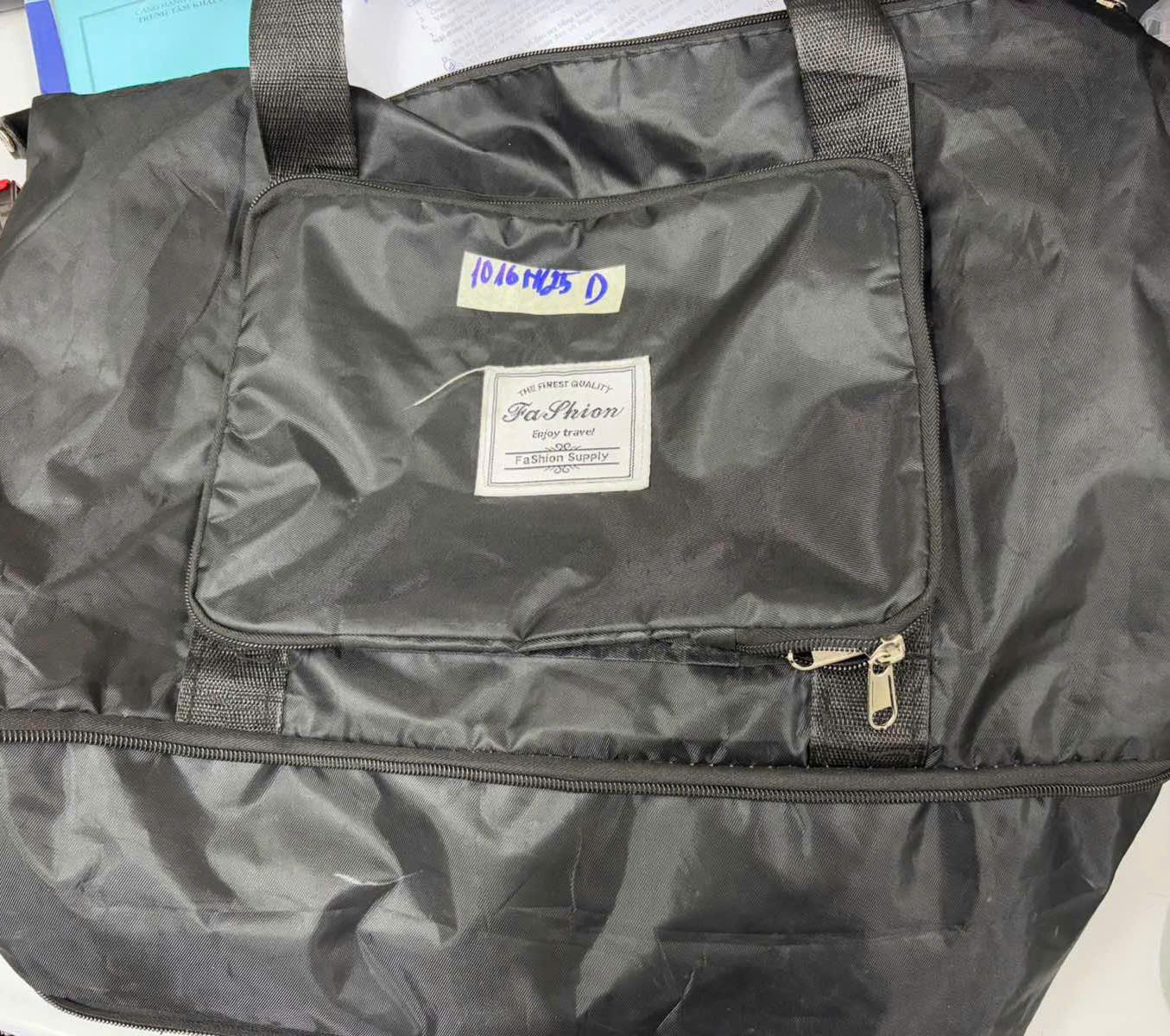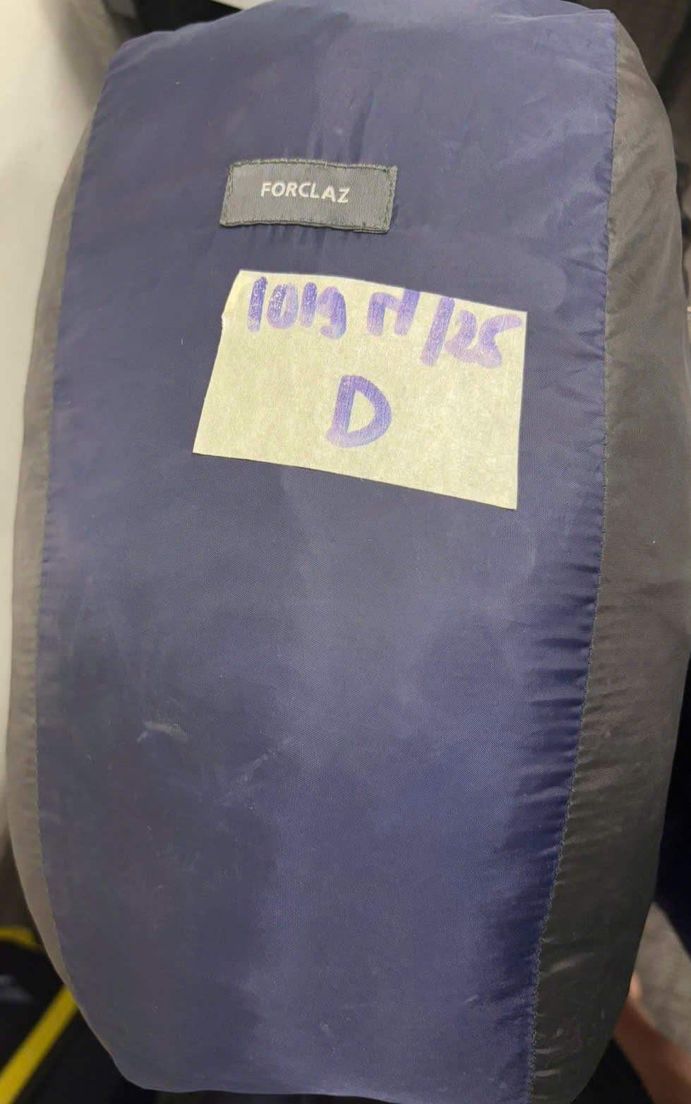 Ngày tiếp nhận: 03/6/2025 Mã hồ sơ: 1019N2025D Mô tả: 01 túi vải bằng vải chữ FORCLAZ màu đen và xanh, bên trong gồm một số quần áo và vật dụng cá nhân. |