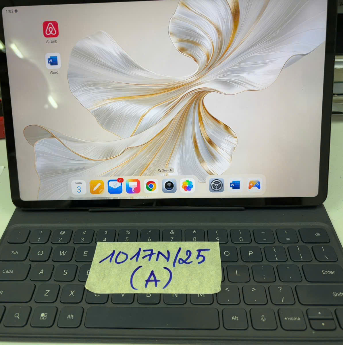 Ngày tiếp nhận: 03/6/2025 Mã hồ sơ: 1017N2025A Mô tả: 01 máy tính bảng màu đen có chữ HONOR PAD cùng bàn phím nhựa màu nâu. |