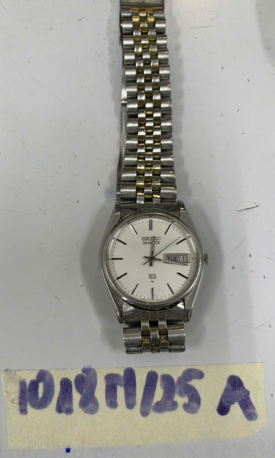Ngày tiếp nhận: 03/6/2025 Mã hồ sơ: 1018N2025A Mô tả: 01 đồng hồ đeo tay màu trắng có chữ SEIKO, mặt đồng hồ tròn, dây kim loại màu trắng. |