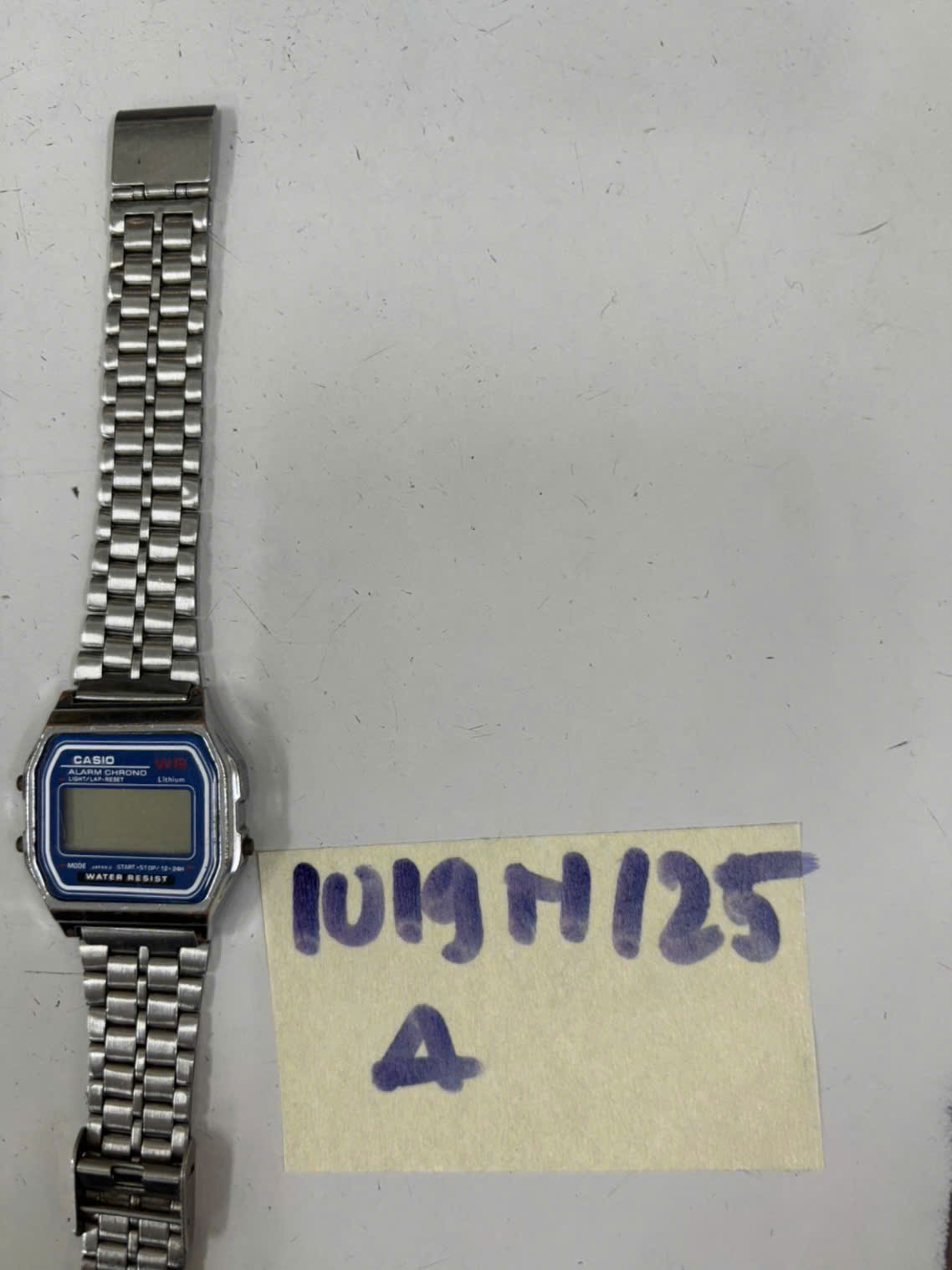 Ngày tiếp nhận: 03/6/2025 Mã hồ sơ: 1019N2025A Mô tả: 01 đồng hồ điện tử màu bạc chữu CASIO, dây đeo kim loại màu bạc. |