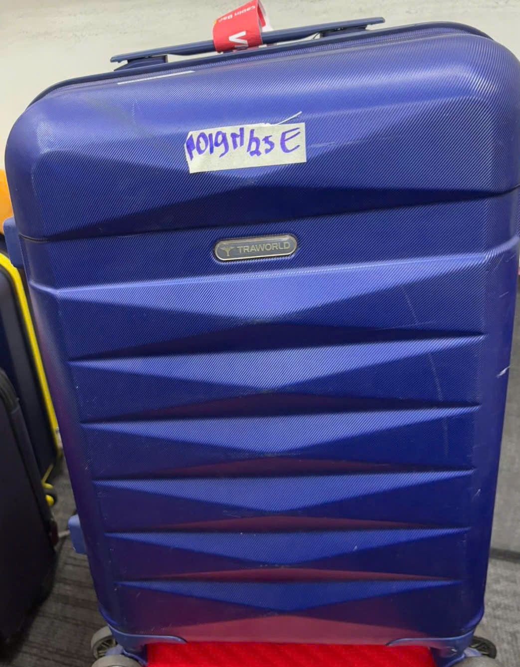 Ngày tiếp nhận: 03/6/2025 Mã hồ sơ: 1019N2025E Mô tả: 01 vali có chữ TRAWORLD bằng nhựa màu xanh bên trong gồm một số quần áo và vật dụng cá nhân. |