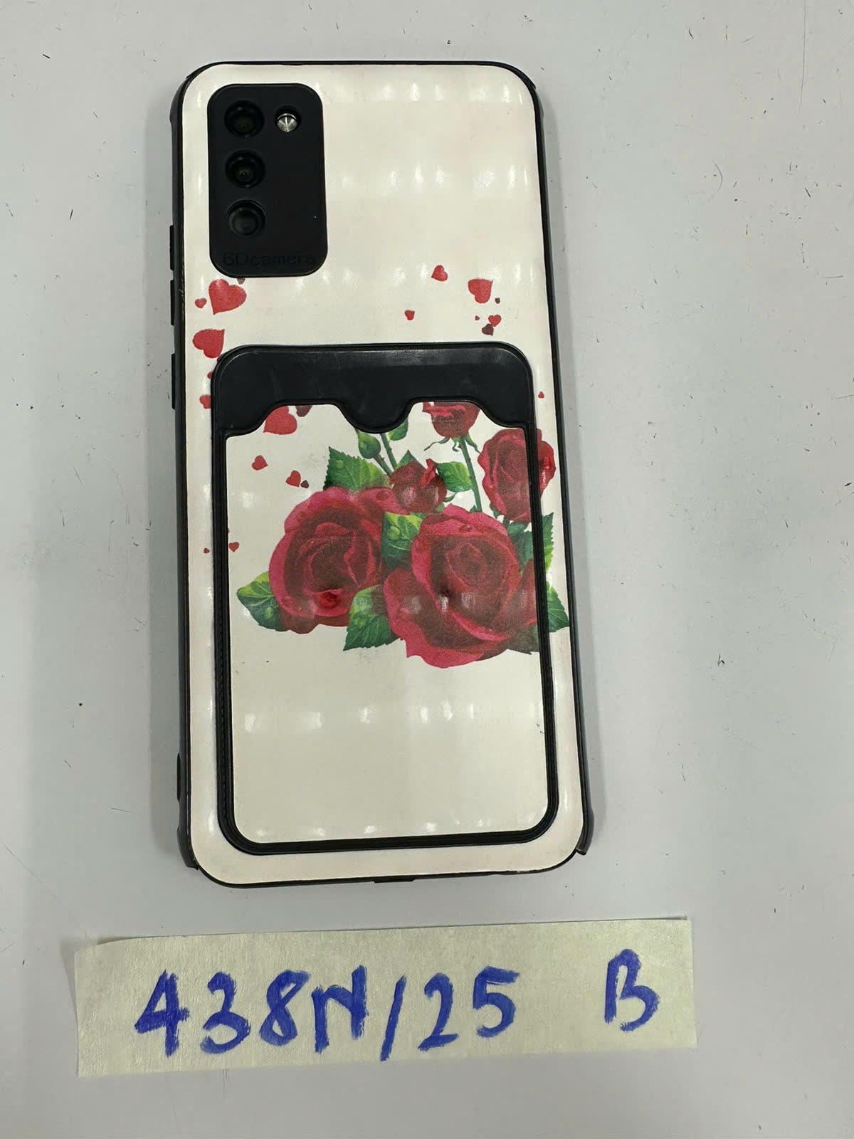Ngày tiếp nhận: 06/03/2025 Mã hồ sơ: 438N2025B Mô tả: 01 Samsung màu đen, số IMEI: 353112/44/461810/8, Ốp lưng màu trắng có in hình hoa hồng. |