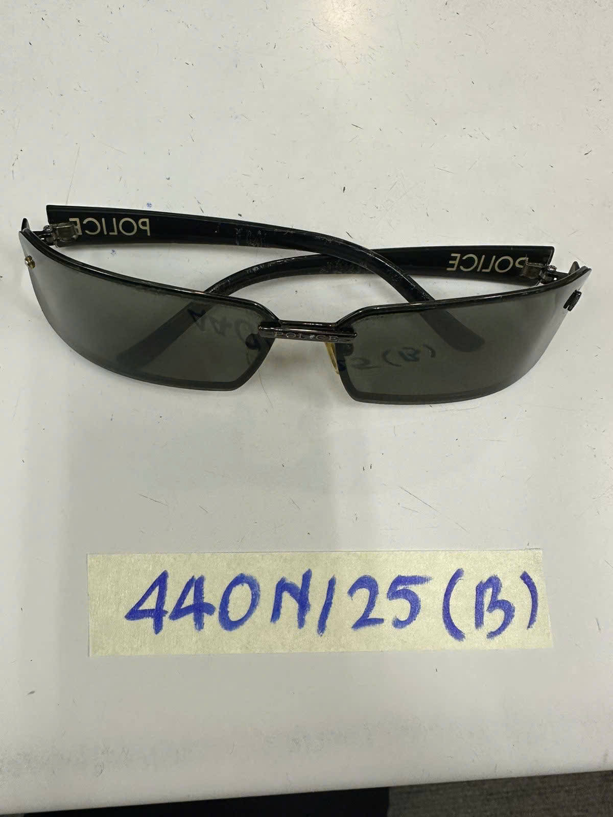 Ngày tiếp nhận: 06/03/2025 Mã hồ sơ: 440N2025B Mô tả: 01 cặp mắt kính màu đen có logo chữ "POLICE". |
