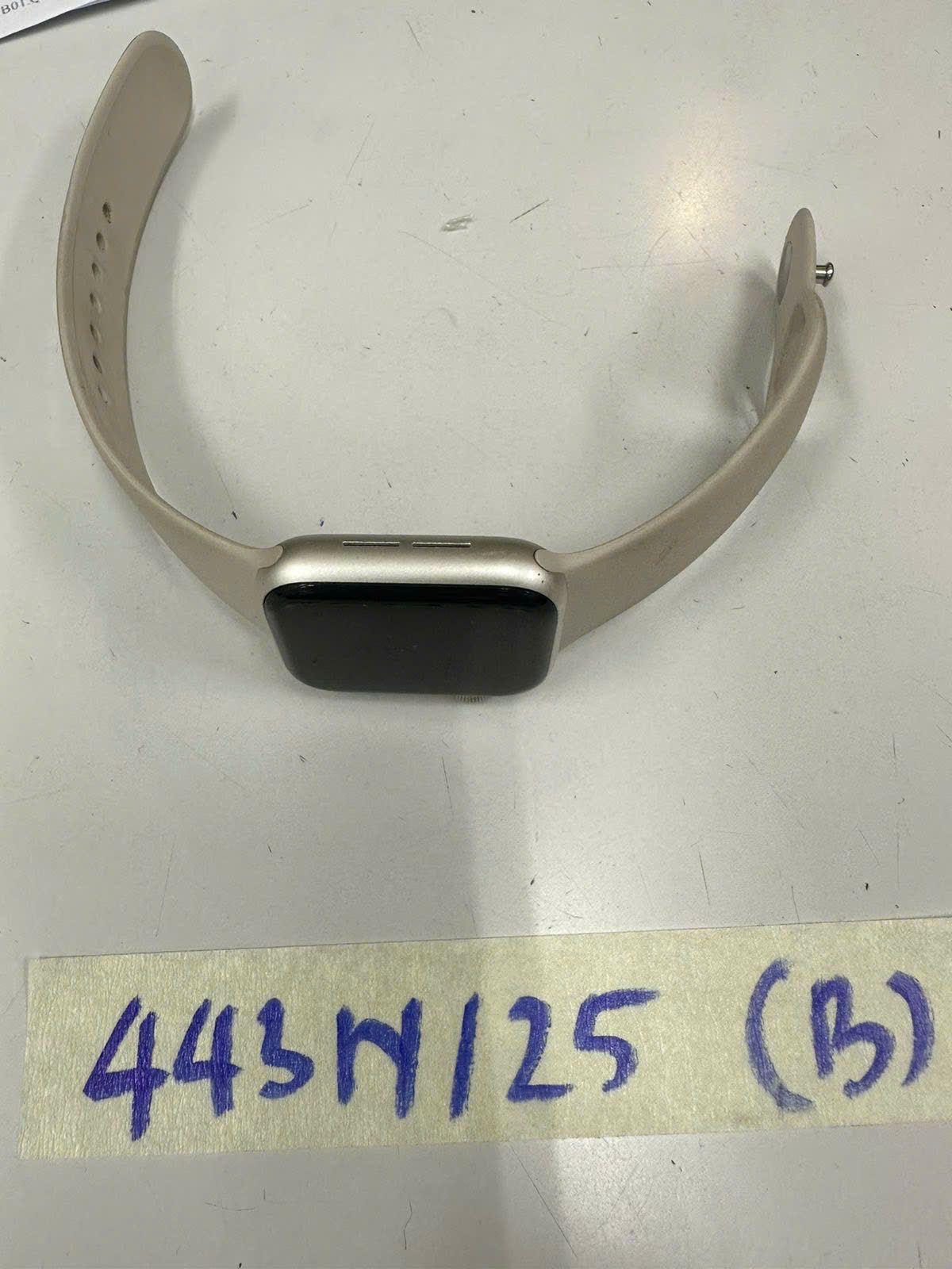 Ngày tiếp nhận: 06/03/2025 Mã hồ sơ: 443N2025B Mô tả: 01 đồng hồ Apple Watch Series SE màu trắng, dây cao su màu trắng. |