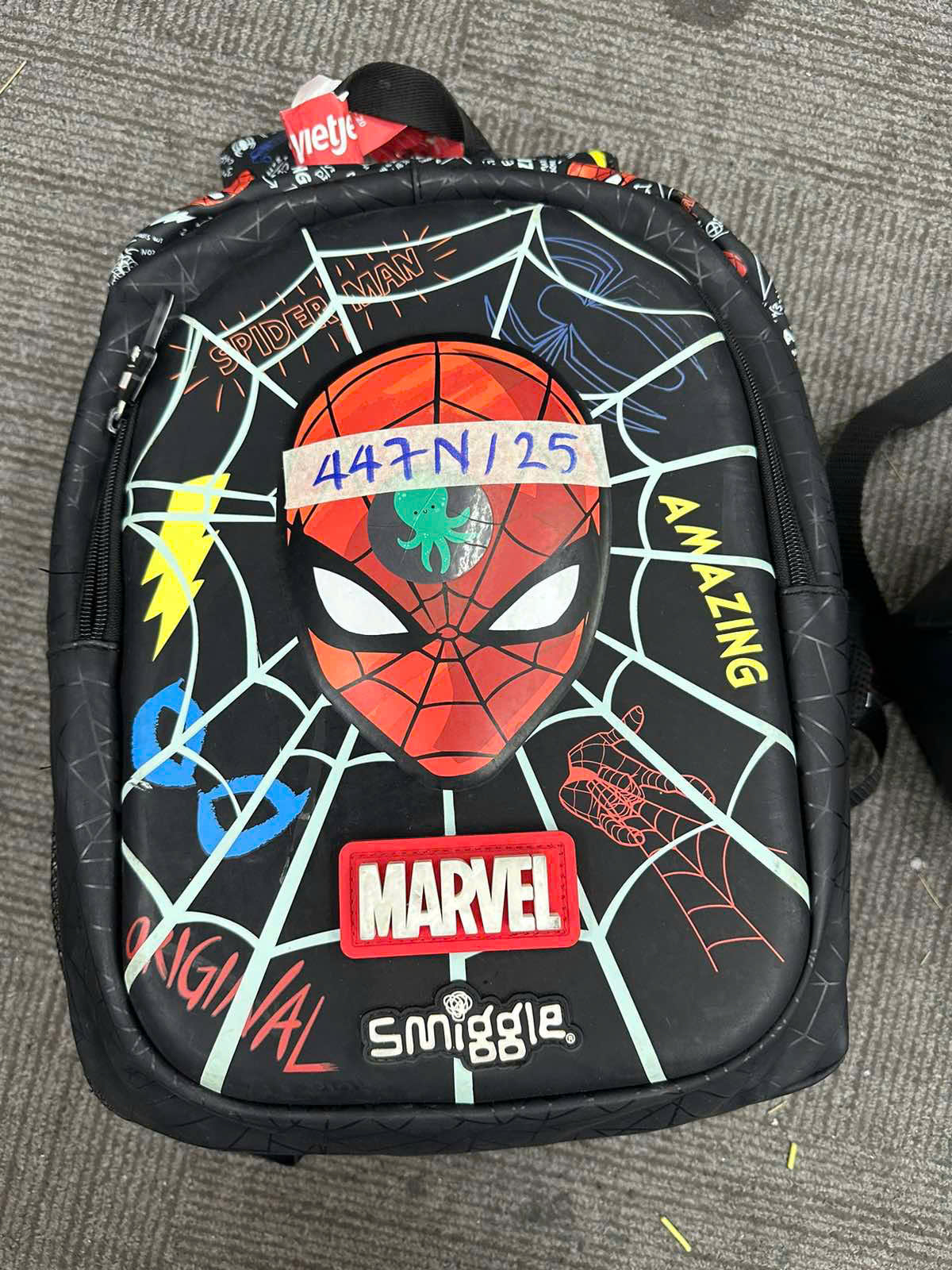 Ngày tiếp nhận: 06/03/2025 Mã hồ sơ: 447N2025 Mô tả: 01 balo màu đen/ đỏ có hình "Spider Man" và chữ "MARVEL", balo có tag “Vietjet". Bên trong balo có: 01 (một) Ipad màu xám, Serial: DLXTN32LHP50 có ốp lưng cao su màu xanh ( lpad vỡ màn hình). |