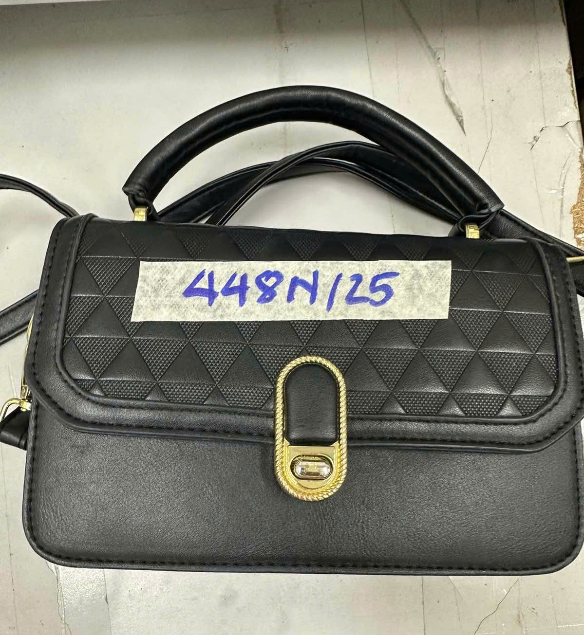 Ngày tiếp nhận: 06/03/2025 Mã hồ sơ: 441N2025 Mô tả: 01 túi đựng đồ bằng da màu đen, khóa màu vàng bên trong có: 01 (một) đôi giày thể thao nàu xám có chữ ONKE, 01 (một) đôi dép, một số quần áo cũ và đồ dùng cá nhân, ngoài ra không còn gì có giá trị. |