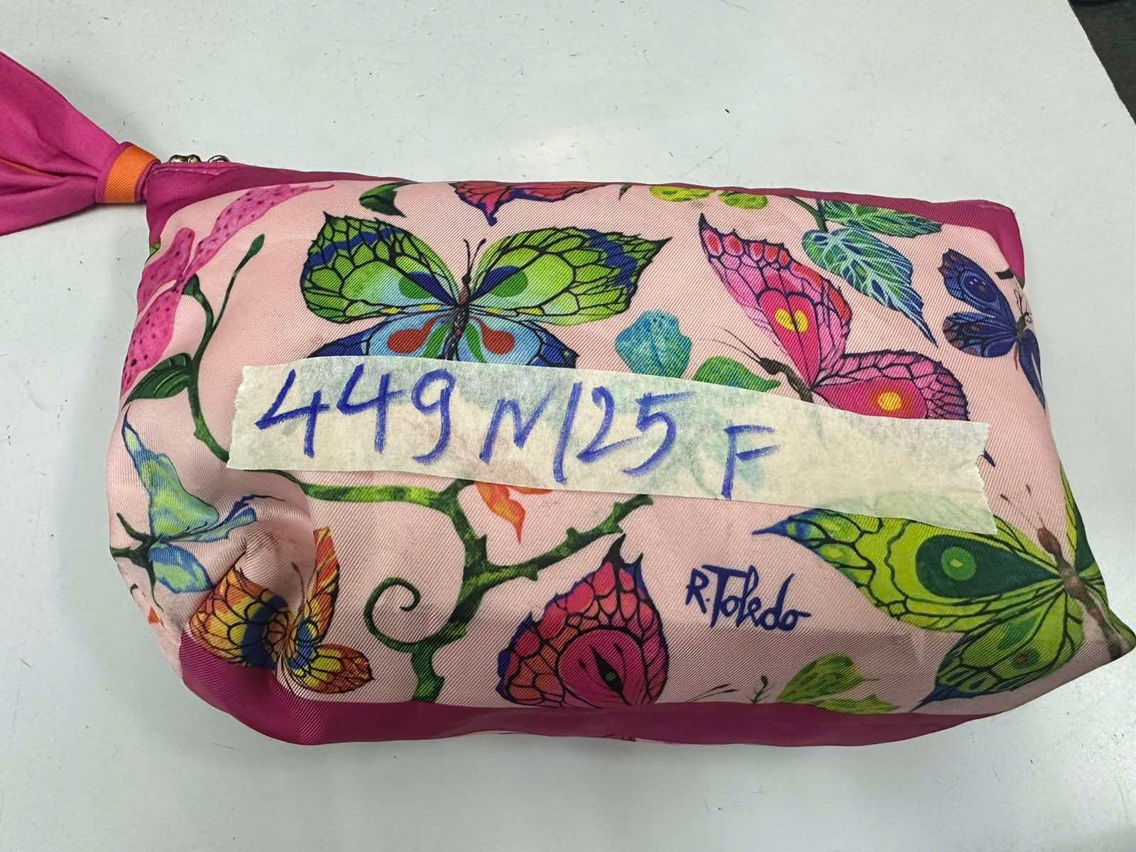 Ngày tiếp nhận: 06/03/2025 Mã hồ sơ: 449N2025F Mô tả: 01 Túi màu hồng có chữ "ESTEELAUDER" bên trong có đồ trang điểm. |
