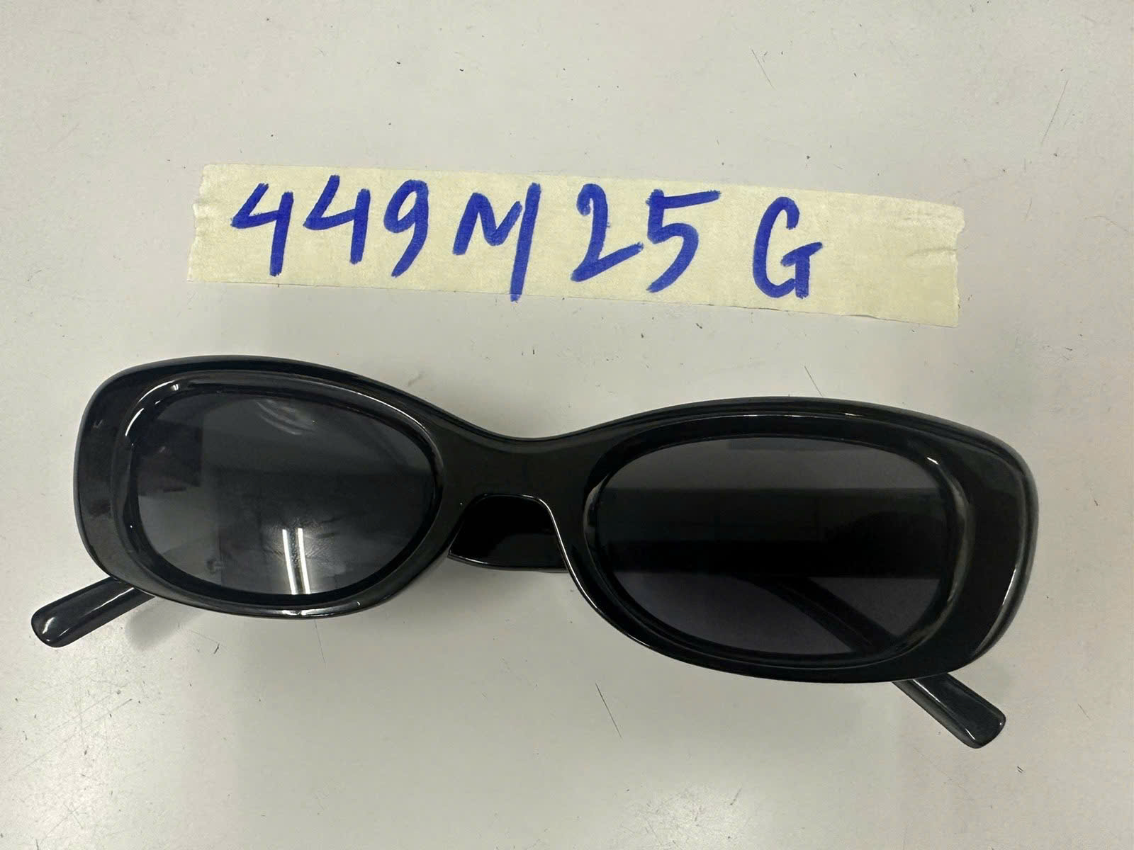 Ngày tiếp nhận: 06/03/2025 Mã hồ sơ: 449N2025G Mô tả: 01 Mắt kính nhựa, màu đen có chữ "Maison". |