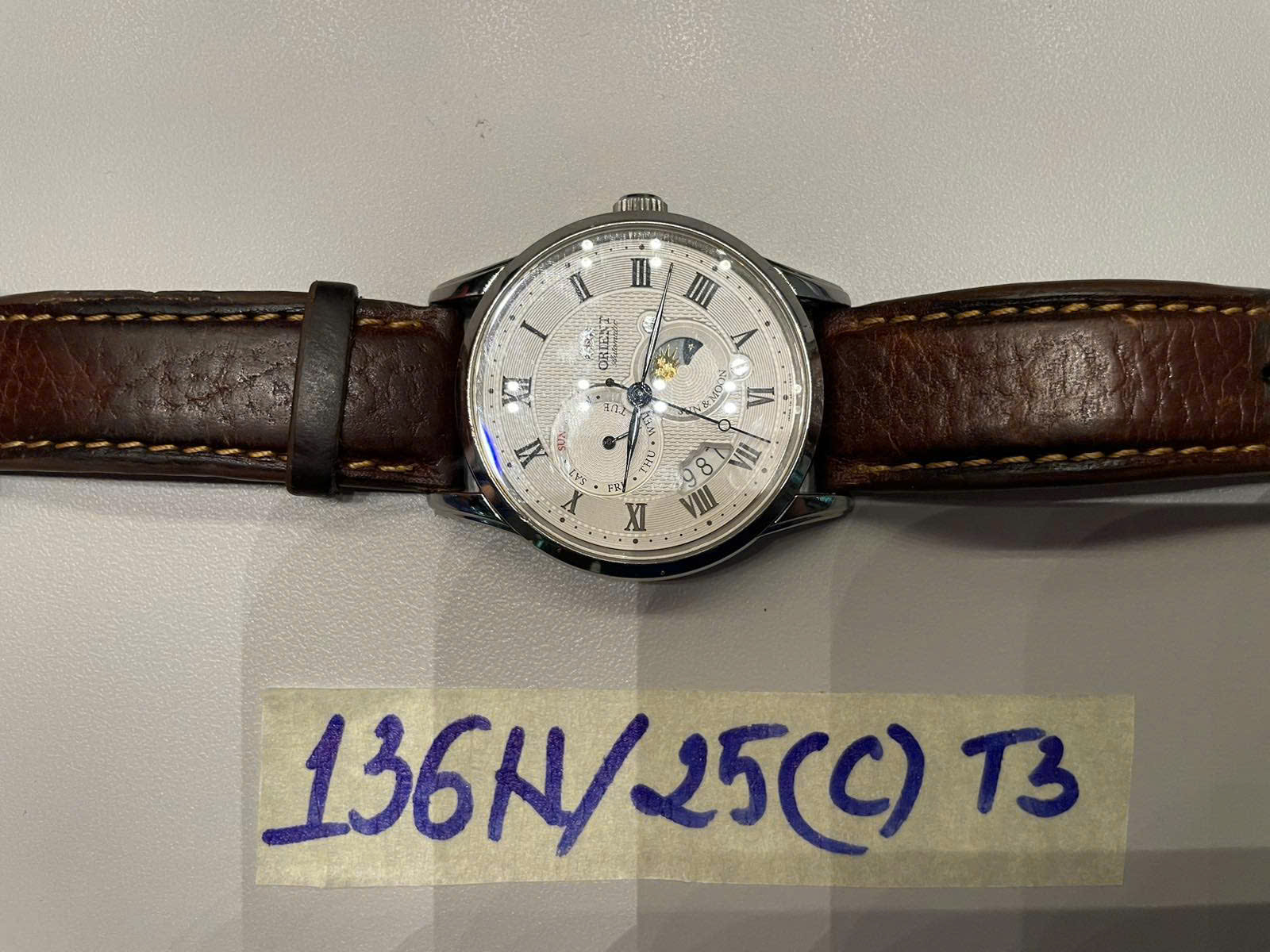Ngày tiếp nhận: 16/12/2025 Mã hồ sơ: 136N2025C Mô tả: 01 đồng hồ dây màu nâu có chữ Orient. |