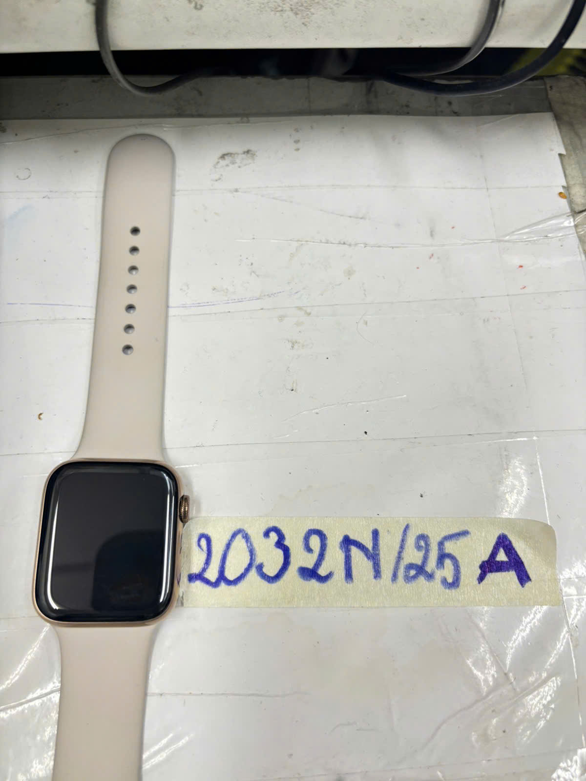 Ngày tiếp nhận: 19/11/2025 Mã hồ sơ: 2032N2025A Mô tả: 01 đồng hồ thông minh, mặt hình chữ nhật, dây đeo bằng cao su màu trắng (Apple Watch Series 4). |