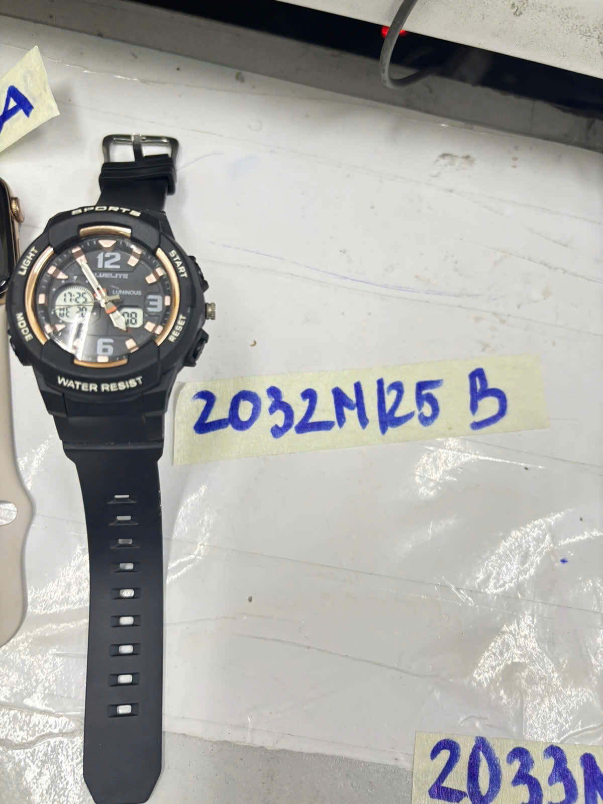 Ngày tiếp nhận: 19/11/2025 Mã hồ sơ: 2032N2025B Mô tả: 01 đồng hồ đeo tay bằng nhựa màu đen, mặt hình tròn có logo chữ "SPORT BLUELITE". |