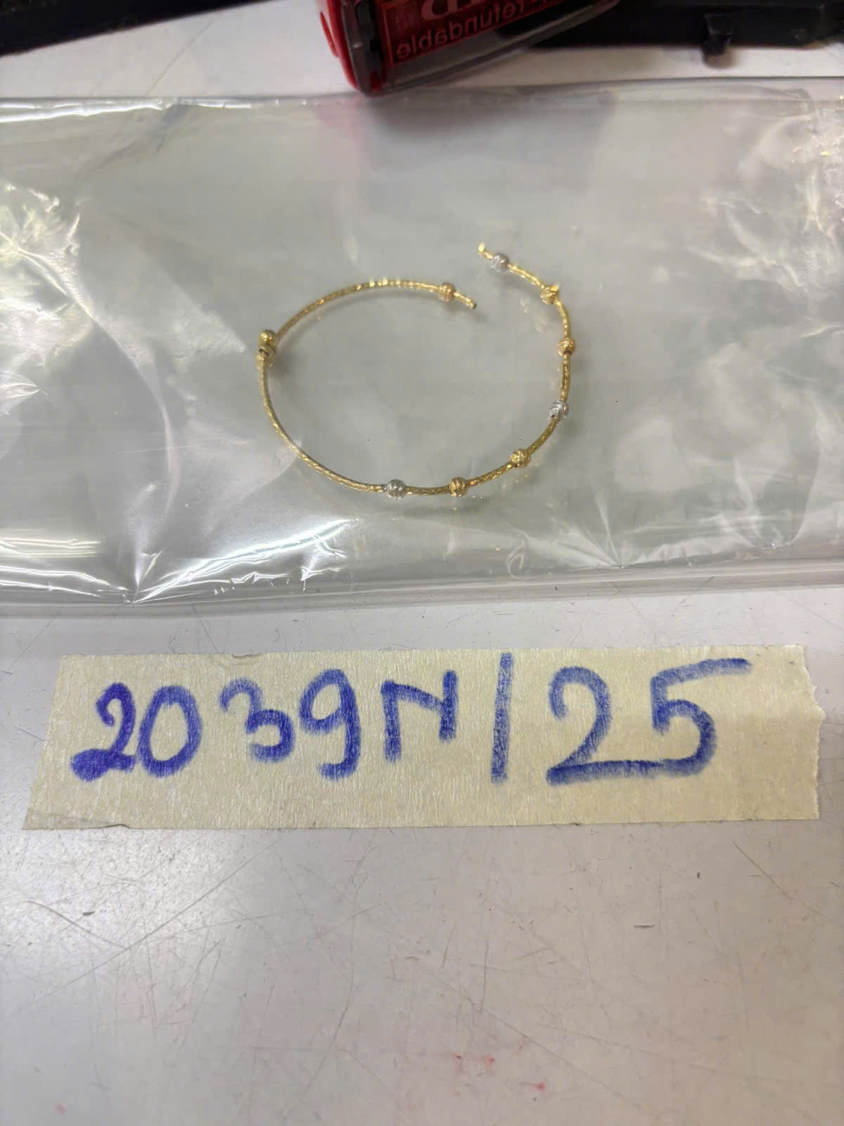 Ngày tiếp nhận: 20/11/2025 Mã hồ sơ: 2039N2025 Mô tả: 01 lắc tay nữ kim loại màu vàng đã qua sử dụng. |