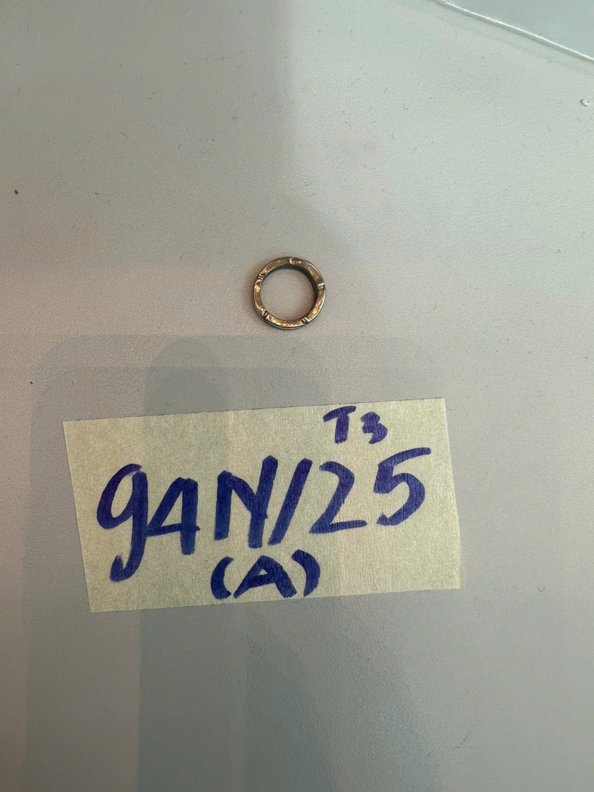 Ngày tiếp nhận: 19/11/2025 Mã hồ sơ: 94N2025A Mô tả: 01 nhẫn kim loại màu vàng và trắng. |