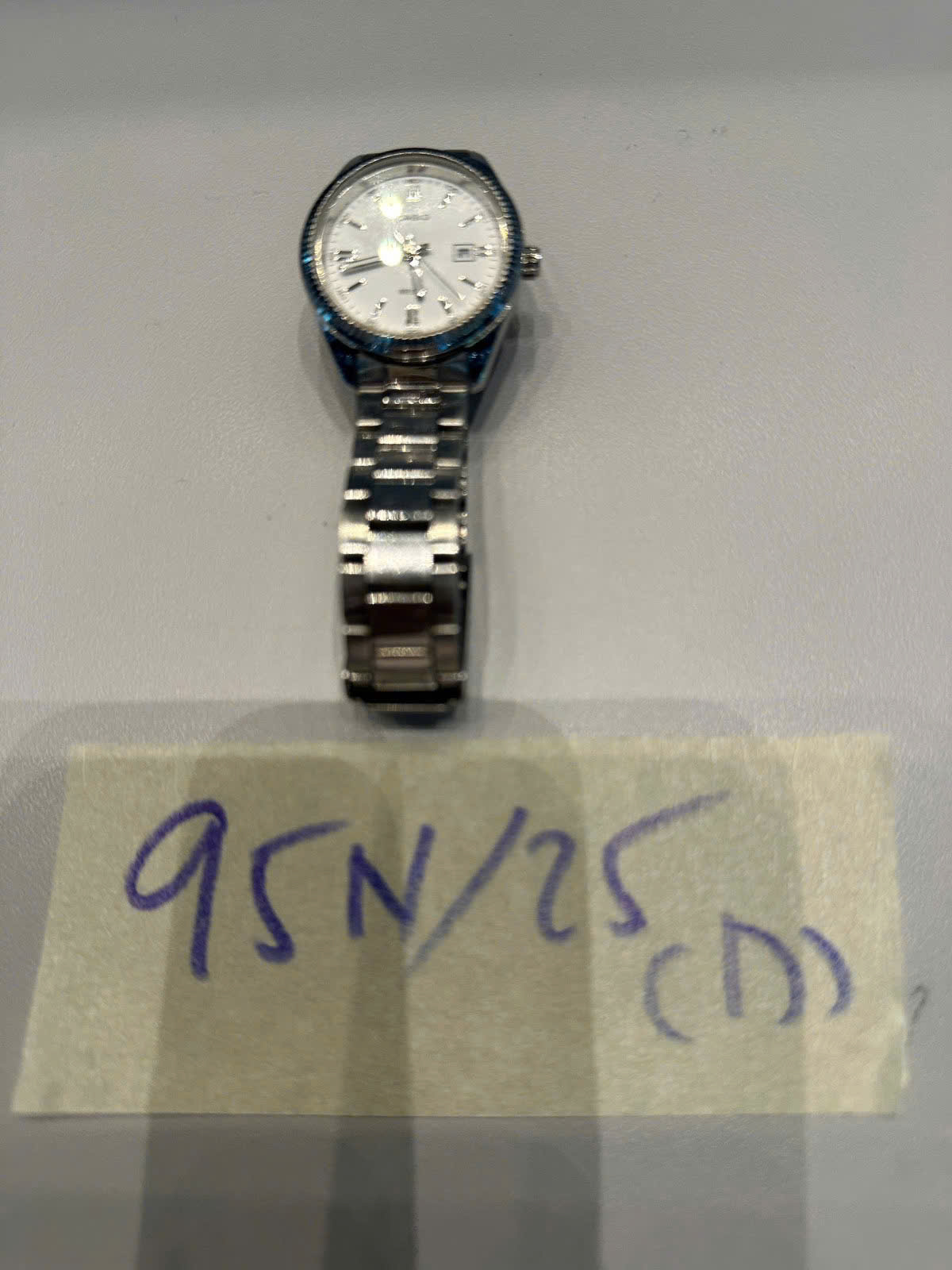 Ngày tiếp nhận: 20/11/2025 Mã hồ sơ: 95N2025D Mô tả: 01 đồng hồ có chữ CASIO kim loại màu trắng. |