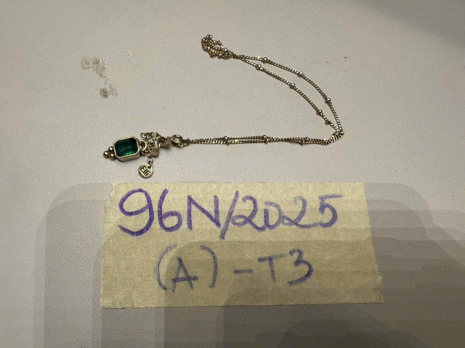 Ngày tiếp nhận: 20/11/2025 Mã hồ sơ: 96N2025A Mô tả: 01 dây chuyền màu vàng có đính đá màu xanh ngọc, đã sử dụng. |