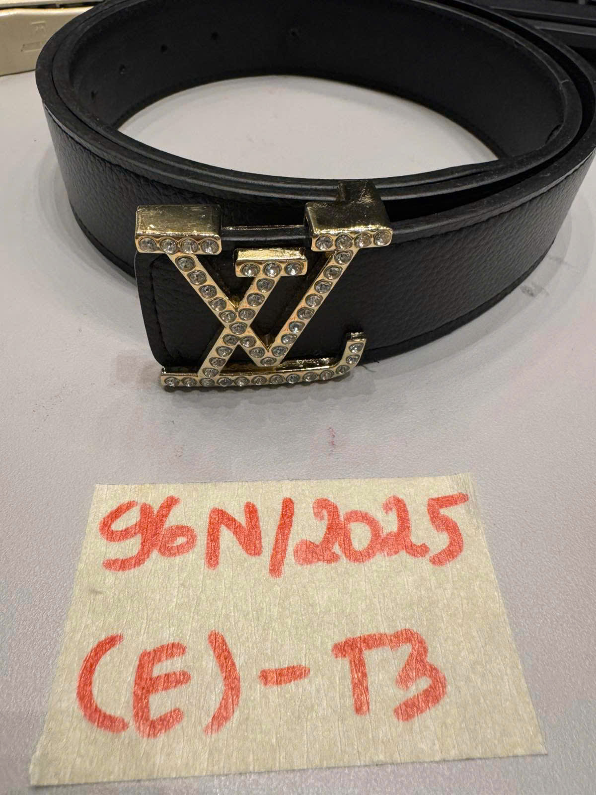 Ngày tiếp nhận: 20/11/2025 Mã hồ sơ: 96N2025E Mô tả: 01 dây thắt lưng màu đen, mặt có chữ LV đính đá, đã sử dụng. |