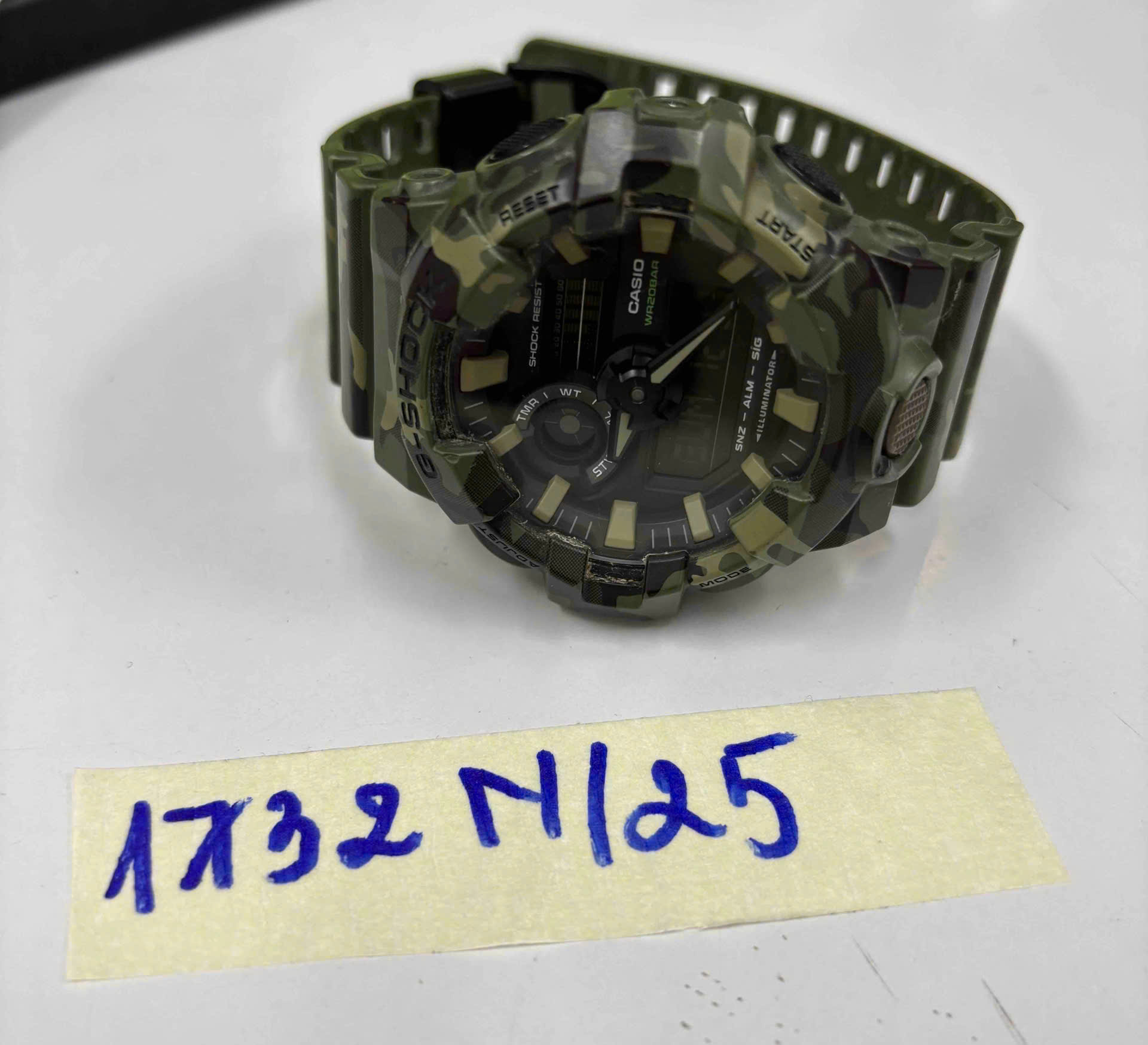 Ngày tiếp nhận: 22/9/2025 Mã hồ sơ: 1732N2025 Mô tả: 01 đồng hồ CASIO G SHOCK mặt tròn, dây đeo cao su màu rằn ri. |