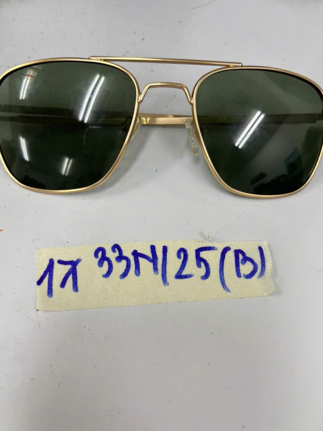 Ngày tiếp nhận: 22/9/2025 Mã hồ sơ: 1733N2025B Mô tả: 01 hộp kính gọng kim loại màu vàng, mặt kính xám xanh. |