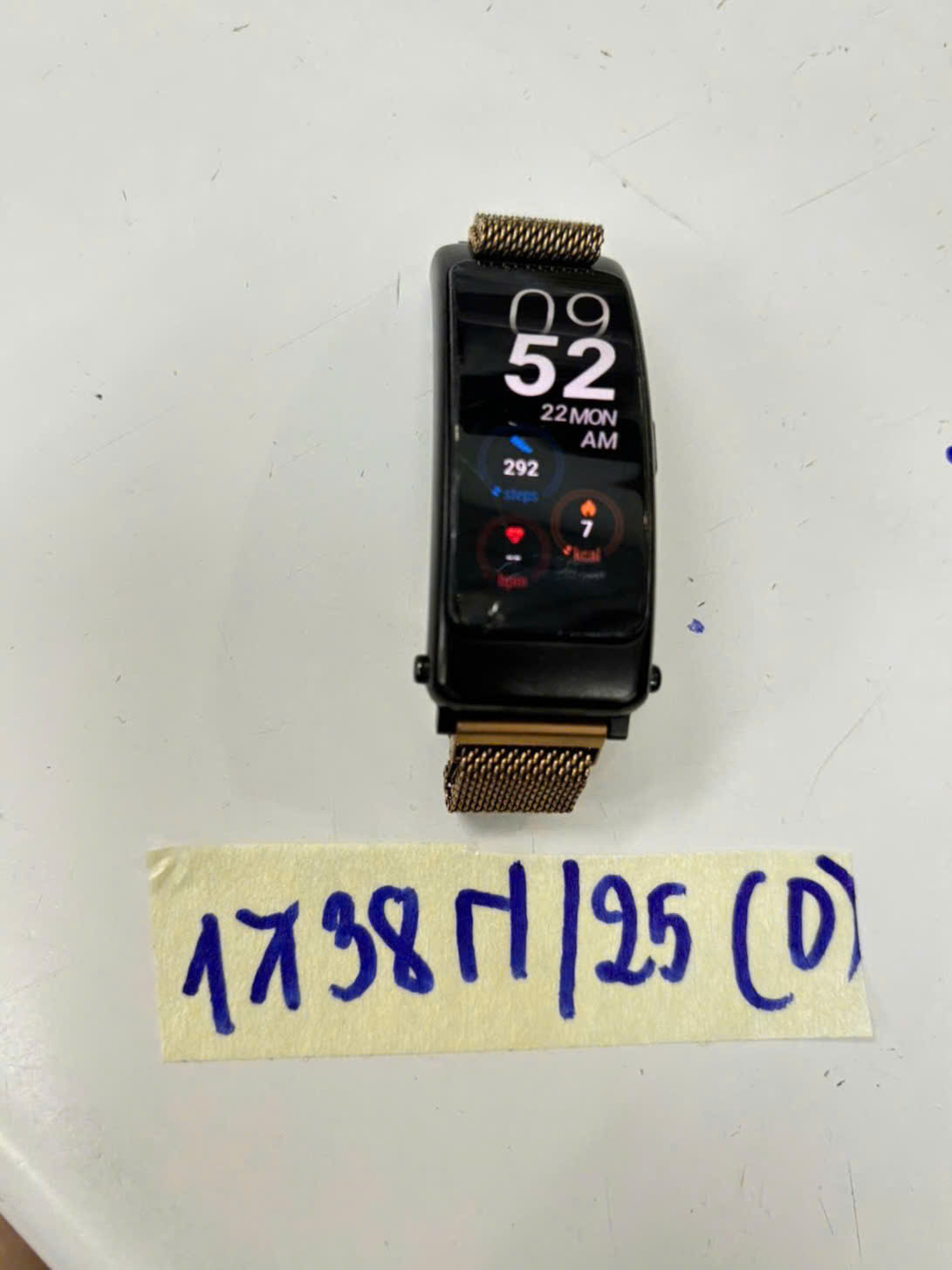 Ngày tiếp nhận: 22/9/2025 Mã hồ sơ: 1738N2025D Mô tả: 01 đồng hồ thông minh mặt chữ nhật màu đen kim loại chữ HUAWEI, dây kim loại màu vàng. |